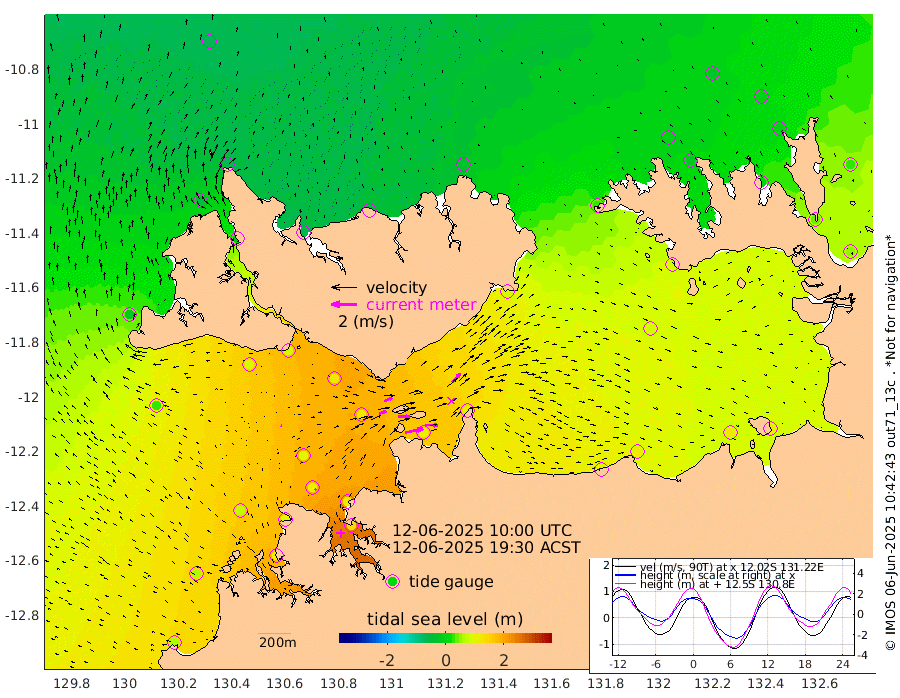 142cm/s 78T +4cm/s rms + 6cm/s 51T. Darwin_C1 52m 102cm/s 92T +4cm/s rms + 7cm/s -161T. Darwin_CW1 22m 57cm/s 71T +4cm/s rms + 8cm/s 61T. Darwin_CW2 34m 93cm/s 42T +3cm/s rms + 9cm/s 98T. Darwin_CW3 22m 93cm/s 90T +5cm/s rms + 7cm/s 88T. Darwin_C3 56m 67cm/s 66T +2cm/s rms + 9cm/s -126T. Darwin_CTbW 22m 8cm/s -58T +1cm/s rms + 1cm/s -47T. DARBGF 30m 14cm/s -28T +4cm/s rms + 3cm/s 80T. NRSDAR 19m -63cm Goodrich Bank 61cm Point Jenny 60cm Native Point 75cm Fish Reef 90cm Tapa Bay -12cm Point Fawcett (Offshore) 101cm Burge Point 81cm Munkunuwa 33cm Beagle A 119cm Parsons Bank 92cm Fenton Patches 122cm Hancox Shoal Area 122cm Nightcliff 138cm Darwin 106cm Charles Point Patches 111cm Glyde Point 103cm Chambers Bay 113cm Point Stuart 104cm Cape Hotham 88cm Christine Reef 122cm West Alligator Head 121cm East Field Island 88cm Two Hills Bay 88cm Camp Point 90cm Medina Inlet South -14cm South Barlow Point -42cm St. Asaph Bay -60cm Cape Van Dieman -46cm Snake Bay -57cm Cache Point -31cm Point Jahleel (Off) 24cm Cape Don -11cm Port Essington -15cm Smith Point - West -10cm NW Peacock Island -29cm North Of Jones Shoal -6cm Peacock Island 40cm Point David -3cm D'urville Point 45cm Copeland Island 31cm One Tree Point