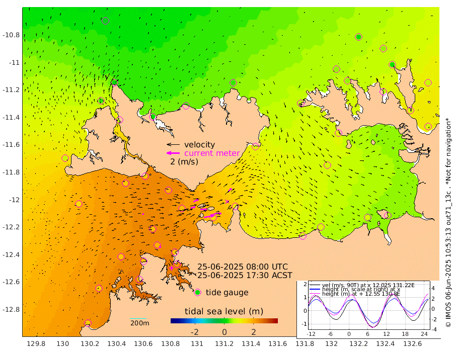 162cm/s 77T +4cm/s rms + 6cm/s 51T. Darwin_C1 52m 114cm/s 89T +4cm/s rms + 7cm/s -161T. Darwin_CW1 22m 69cm/s 75T +4cm/s rms + 8cm/s 61T. Darwin_CW2 34m 84cm/s 44T +3cm/s rms + 9cm/s 98T. Darwin_CW3 22m 100cm/s 89T +5cm/s rms + 7cm/s 88T. Darwin_C3 56m 86cm/s 64T +2cm/s rms + 9cm/s -126T. Darwin_CTbW 22m 29cm/s 85T +1cm/s rms + 1cm/s -47T. DARBGF 30m 29cm/s 109T +4cm/s rms + 3cm/s 80T. NRSDAR 19m -1cm Goodrich Bank 148cm Point Jenny 148cm Native Point 165cm Fish Reef 170cm Tapa Bay 73cm Point Fawcett (Offshore) 186cm Burge Point 159cm Munkunuwa 128cm Beagle A 191cm Parsons Bank 177cm Fenton Patches 179cm Hancox Shoal Area 179cm Nightcliff 204cm Darwin 184cm Charles Point Patches 145cm Glyde Point 87cm Chambers Bay 95cm Point Stuart 121cm Cape Hotham 81cm Christine Reef 94cm West Alligator Head 75cm East Field Island 94cm Two Hills Bay 91cm Camp Point 168cm Medina Inlet South 66cm South Barlow Point 32cm St. Asaph Bay 7cm Cape Van Dieman 16cm Snake Bay 9cm Cache Point 25cm Point Jahleel (Off) 71cm Cape Don 48cm Port Essington 45cm Smith Point - West 47cm NW Peacock Island 20cm North Of Jones Shoal 11cm Peacock Island 84cm Point David 57cm D'urville Point 86cm Copeland Island 75cm One Tree Point