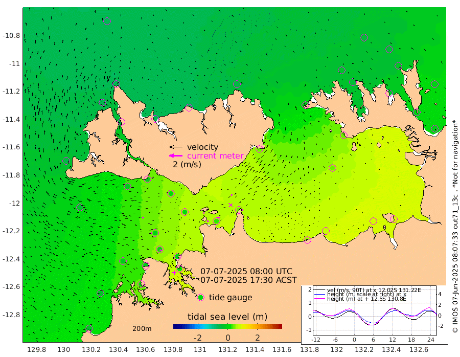16cm/s 83T +4cm/s rms + 6cm/s 51T. Darwin_C1 52m 38cm/s 93T +4cm/s rms + 7cm/s -161T. Darwin_CW1 22m 3cm/s 27T +4cm/s rms + 8cm/s 61T. Darwin_CW2 34m 24cm/s 35T +3cm/s rms + 9cm/s 98T. Darwin_CW3 22m 17cm/s 93T +5cm/s rms + 7cm/s 88T. Darwin_C3 56m 1cm/s 113T +2cm/s rms + 9cm/s -126T. Darwin_CTbW 22m 27cm/s -85T +1cm/s rms + 1cm/s -47T. DARBGF 30m 31cm/s -57T +4cm/s rms + 3cm/s 80T. NRSDAR 19m -66cm Goodrich Bank -28cm Point Jenny -30cm Native Point -12cm Fish Reef -20cm Tapa Bay -55cm Point Fawcett (Offshore) -4cm Burge Point -22cm Munkunuwa -37cm Beagle A 1cm Parsons Bank -9cm Fenton Patches 2cm Hancox Shoal Area -2cm Nightcliff 13cm Darwin -5cm Charles Point Patches 31cm Glyde Point 53cm Chambers Bay 74cm Point Stuart 39cm Cape Hotham 41cm Christine Reef 83cm West Alligator Head 99cm East Field Island 43cm Two Hills Bay 40cm Camp Point -12cm Medina Inlet South -57cm South Barlow Point -67cm St. Asaph Bay -66cm Cape Van Dieman -62cm Snake Bay -62cm Cache Point -48cm Point Jahleel (Off) -11cm Cape Don -33cm Port Essington -40cm Smith Point - West -36cm NW Peacock Island -43cm North Of Jones Shoal -13cm Peacock Island -8cm Point David -34cm D'urville Point -3cm Copeland Island -8cm One Tree Point
