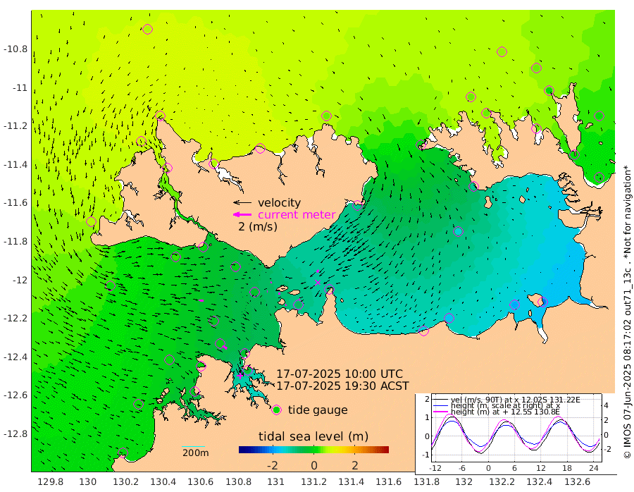 7cm/s 82T +4cm/s rms + 6cm/s 51T. Darwin_C1 52m 5cm/s 83T +4cm/s rms + 7cm/s -161T. Darwin_CW1 22m 5cm/s 70T +4cm/s rms + 8cm/s 61T. Darwin_CW2 34m 32cm/s -149T +3cm/s rms + 9cm/s 98T. Darwin_CW3 22m 22cm/s -84T +5cm/s rms + 7cm/s 88T. Darwin_C3 56m 11cm/s 61T +2cm/s rms + 9cm/s -126T. Darwin_CTbW 22m 51cm/s 96T +1cm/s rms + 1cm/s -47T. DARBGF 30m 56cm/s 126T +4cm/s rms + 3cm/s 80T. NRSDAR 19m 63cm Goodrich Bank 10cm Point Jenny 13cm Native Point 7cm Fish Reef 1cm Tapa Bay 58cm Point Fawcett (Offshore) -13cm Burge Point 26cm Munkunuwa 15cm Beagle A -9cm Parsons Bank -21cm Fenton Patches -32cm Hancox Shoal Area -33cm Nightcliff -28cm Darwin -1cm Charles Point Patches -77cm Glyde Point -149cm Chambers Bay -162cm Point Stuart -95cm Cape Hotham -135cm Christine Reef -186cm West Alligator Head -222cm East Field Island -108cm Two Hills Bay -103cm Camp Point 9cm Medina Inlet South 67cm South Barlow Point 69cm St. Asaph Bay 69cm Cape Van Dieman 67cm Snake Bay 57cm Cache Point 36cm Point Jahleel (Off) -2cm Cape Don 42cm Port Essington 39cm Smith Point - West 36cm NW Peacock Island 47cm North Of Jones Shoal 16cm Peacock Island 16cm Point David 37cm D'urville Point 11cm Copeland Island 19cm One Tree Point