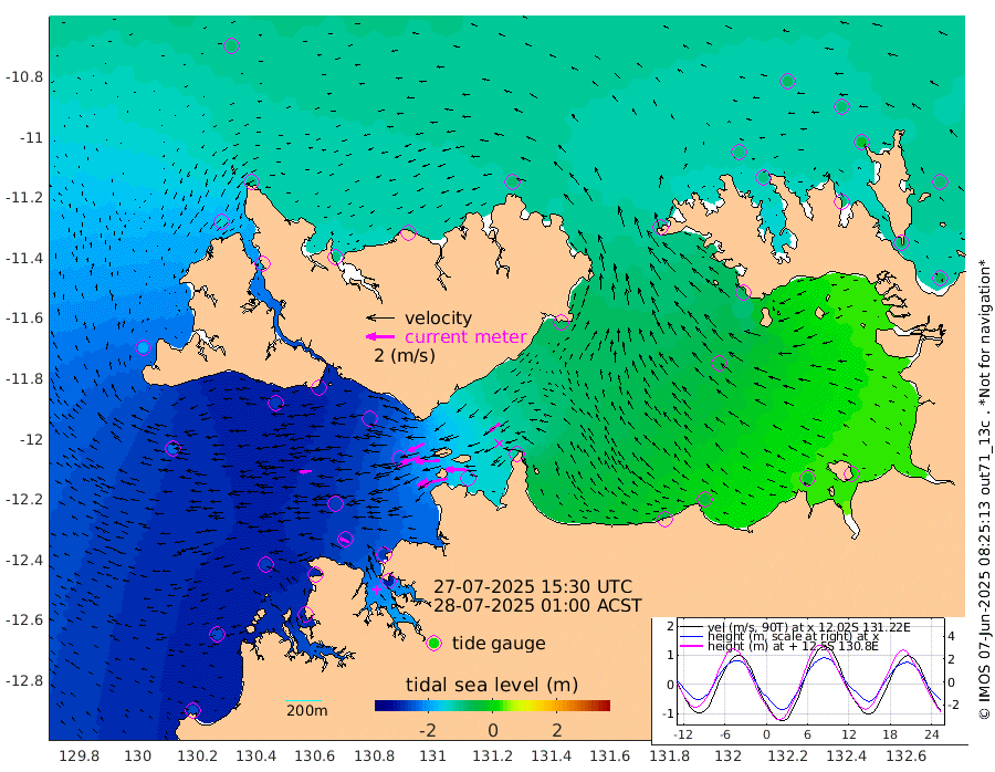 221cm/s -102T +4cm/s rms + 6cm/s 51T. Darwin_C1 52m 168cm/s -89T +4cm/s rms + 7cm/s -161T. Darwin_CW1 22m 132cm/s -107T +4cm/s rms + 8cm/s 61T. Darwin_CW2 34m 90cm/s -128T +3cm/s rms + 9cm/s 98T. Darwin_CW3 22m 176cm/s -91T +5cm/s rms + 7cm/s 88T. Darwin_C3 56m 124cm/s -115T +2cm/s rms + 9cm/s -126T. Darwin_CTbW 22m 80cm/s -92T +1cm/s rms + 1cm/s -47T. DARBGF 30m 67cm/s -64T +4cm/s rms + 3cm/s 80T. NRSDAR 19m -81cm Goodrich Bank -248cm Point Jenny -250cm Native Point -260cm Fish Reef -271cm Tapa Bay -189cm Point Fawcett (Offshore) -273cm Burge Point -269cm Munkunuwa -227cm Beagle A -264cm Parsons Bank -259cm Fenton Patches -245cm Hancox Shoal Area -266cm Nightcliff -285cm Darwin -281cm Charles Point Patches -165cm Glyde Point -59cm Chambers Bay -38cm Point Stuart -117cm Cape Hotham -52cm Christine Reef -28cm West Alligator Head 17cm East Field Island -73cm Two Hills Bay -78cm Camp Point -273cm Medina Inlet South -172cm South Barlow Point -140cm St. Asaph Bay -91cm Cape Van Dieman -101cm Snake Bay -86cm Cache Point -88cm Point Jahleel (Off) -105cm Cape Don -93cm Port Essington -91cm Smith Point - West -82cm NW Peacock Island -78cm North Of Jones Shoal -28cm Peacock Island -82cm Point David -89cm D'urville Point -77cm Copeland Island -85cm One Tree Point