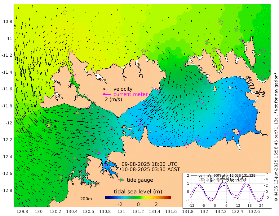 15cm/s 79T +4cm/s rms + 6cm/s 51T. Darwin_C1 52m 4cm/s -112T +4cm/s rms + 7cm/s -161T. Darwin_CW1 22m 0cm/s -44T +4cm/s rms + 8cm/s 61T. Darwin_CW2 34m 45cm/s -148T +3cm/s rms + 9cm/s 98T. Darwin_CW3 22m 38cm/s -88T +5cm/s rms + 7cm/s 88T. Darwin_C3 56m 28cm/s 62T +2cm/s rms + 9cm/s -126T. Darwin_CTbW 22m 67cm/s 96T +1cm/s rms + 1cm/s -47T. DARBGF 30m 74cm/s 127T +4cm/s rms + 3cm/s 80T. NRSDAR 19m 70cm Goodrich Bank 25cm Point Jenny 26cm Native Point 13cm Fish Reef -1cm Tapa Bay 70cm Point Fawcett (Offshore) -10cm Burge Point 26cm Munkunuwa 48cm Beagle A -22cm Parsons Bank -3cm Fenton Patches -45cm Hancox Shoal Area -25cm Nightcliff -56cm Darwin -31cm Charles Point Patches -91cm Glyde Point -162cm Chambers Bay -178cm Point Stuart -106cm Cape Hotham -133cm Christine Reef -199cm West Alligator Head -235cm East Field Island -118cm Two Hills Bay -122cm Camp Point 1cm Medina Inlet South 75cm South Barlow Point 83cm St. Asaph Bay 77cm Cape Van Dieman 69cm Snake Bay 67cm Cache Point 43cm Point Jahleel (Off) -10cm Cape Don 27cm Port Essington 37cm Smith Point - West 28cm NW Peacock Island 41cm North Of Jones Shoal 12cm Peacock Island -15cm Point David 29cm D'urville Point -20cm Copeland Island -10cm One Tree Point