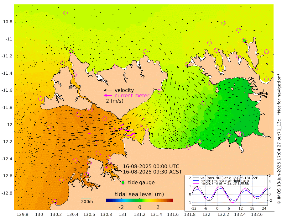150cm/s 78T +4cm/s rms + 6cm/s 51T. Darwin_C1 52m 98cm/s 88T +4cm/s rms + 7cm/s -161T. Darwin_CW1 22m 92cm/s 74T +4cm/s rms + 8cm/s 61T. Darwin_CW2 34m 66cm/s 48T +3cm/s rms + 9cm/s 98T. Darwin_CW3 22m 132cm/s 89T +5cm/s rms + 7cm/s 88T. Darwin_C3 56m 86cm/s 64T +2cm/s rms + 9cm/s -126T. Darwin_CTbW 22m 51cm/s 86T +1cm/s rms + 1cm/s -47T. DARBGF 30m 47cm/s 113T +4cm/s rms + 3cm/s 80T. NRSDAR 19m 57cm Goodrich Bank 179cm Point Jenny 182cm Native Point 196cm Fish Reef 200cm Tapa Bay 127cm Point Fawcett (Offshore) 212cm Burge Point 202cm Munkunuwa 169cm Beagle A 216cm Parsons Bank 203cm Fenton Patches 195cm Hancox Shoal Area 202cm Nightcliff 227cm Darwin 214cm Charles Point Patches 138cm Glyde Point 56cm Chambers Bay 46cm Point Stuart 104cm Cape Hotham 50cm Christine Reef 40cm West Alligator Head 6cm East Field Island 72cm Two Hills Bay 66cm Camp Point 205cm Medina Inlet South 127cm South Barlow Point 94cm St. Asaph Bay 63cm Cape Van Dieman 76cm Snake Bay 61cm Cache Point 68cm Point Jahleel (Off) 87cm Cape Don 79cm Port Essington 80cm Smith Point - West 77cm NW Peacock Island 60cm North Of Jones Shoal 23cm Peacock Island 86cm Point David 84cm D'urville Point 83cm Copeland Island 83cm One Tree Point
