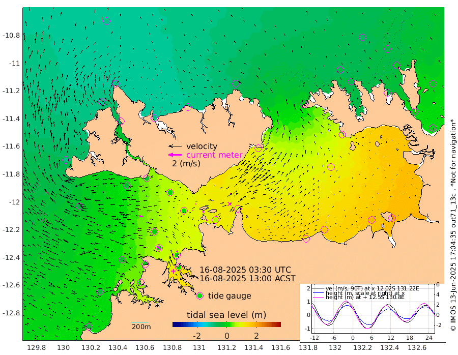 14cm/s 82T +4cm/s rms + 6cm/s 51T. Darwin_C1 52m 10cm/s 80T +4cm/s rms + 7cm/s -161T. Darwin_CW1 22m 2cm/s 7T +4cm/s rms + 8cm/s 61T. Darwin_CW2 34m 30cm/s 41T +3cm/s rms + 9cm/s 98T. Darwin_CW3 22m 23cm/s 96T +5cm/s rms + 7cm/s 88T. Darwin_C3 56m 6cm/s 62T +2cm/s rms + 9cm/s -126T. Darwin_CTbW 22m 59cm/s -84T +1cm/s rms + 1cm/s -47T. DARBGF 30m 68cm/s -54T +4cm/s rms + 3cm/s 80T. NRSDAR 19m -95cm Goodrich Bank -36cm Point Jenny -37cm Native Point -30cm Fish Reef -22cm Tapa Bay -94cm Point Fawcett (Offshore) -4cm Burge Point -38cm Munkunuwa -52cm Beagle A 5cm Parsons Bank -6cm Fenton Patches 19cm Hancox Shoal Area 9cm Nightcliff 17cm Darwin -18cm Charles Point Patches 67cm Glyde Point 135cm Chambers Bay 161cm Point Stuart 86cm Cape Hotham 122cm Christine Reef 184cm West Alligator Head 216cm East Field Island 102cm Two Hills Bay 93cm Camp Point -28cm Medina Inlet South -95cm South Barlow Point -106cm St. Asaph Bay -99cm Cape Van Dieman -93cm Snake Bay -89cm Cache Point -63cm Point Jahleel (Off) -10cm Cape Don -55cm Port Essington -57cm Smith Point - West -49cm NW Peacock Island -71cm North Of Jones Shoal -22cm Peacock Island -8cm Point David -48cm D'urville Point -2cm Copeland Island -17cm One Tree Point