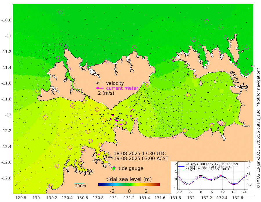 125cm/s 78T +4cm/s rms + 6cm/s 51T. Darwin_C1 52m 101cm/s 91T +4cm/s rms + 7cm/s -161T. Darwin_CW1 22m 51cm/s 73T +4cm/s rms + 8cm/s 61T. Darwin_CW2 34m 63cm/s 47T +3cm/s rms + 9cm/s 98T. Darwin_CW3 22m 79cm/s 90T +5cm/s rms + 7cm/s 88T. Darwin_C3 56m 73cm/s 66T +2cm/s rms + 9cm/s -126T. Darwin_CTbW 22m 16cm/s 77T +1cm/s rms + 1cm/s -47T. DARBGF 30m 10cm/s 99T +4cm/s rms + 3cm/s 80T. NRSDAR 19m -1cm Goodrich Bank 114cm Point Jenny 109cm Native Point 111cm Fish Reef 117cm Tapa Bay 62cm Point Fawcett (Offshore) 124cm Burge Point 102cm Munkunuwa 98cm Beagle A 108cm Parsons Bank 121cm Fenton Patches 114cm Hancox Shoal Area 128cm Nightcliff 117cm Darwin 106cm Charles Point Patches 102cm Glyde Point 104cm Chambers Bay 103cm Point Stuart 94cm Cape Hotham 104cm Christine Reef 114cm West Alligator Head 112cm East Field Island 86cm Two Hills Bay 80cm Camp Point 106cm Medina Inlet South 35cm South Barlow Point 29cm St. Asaph Bay 1cm Cape Van Dieman -4cm Snake Bay 10cm Cache Point 17cm Point Jahleel (Off) 43cm Cape Don 10cm Port Essington 14cm Smith Point - West 7cm NW Peacock Island 5cm North Of Jones Shoal 1cm Peacock Island 5cm Point David 9cm D'urville Point 7cm Copeland Island 8cm One Tree Point