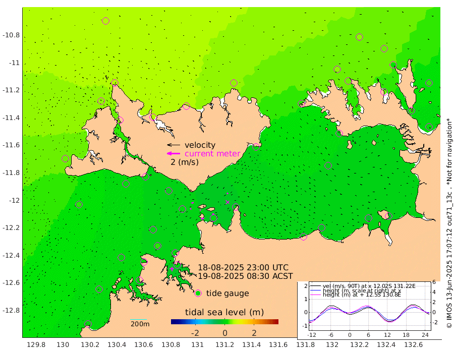 54cm/s -103T +4cm/s rms + 6cm/s 51T. Darwin_C1 52m 25cm/s -86T +4cm/s rms + 7cm/s -161T. Darwin_CW1 22m 15cm/s -114T +4cm/s rms + 8cm/s 61T. Darwin_CW2 34m 21cm/s -126T +3cm/s rms + 9cm/s 98T. Darwin_CW3 22m 9cm/s -93T +5cm/s rms + 7cm/s 88T. Darwin_C3 56m 36cm/s -116T +2cm/s rms + 9cm/s -126T. Darwin_CTbW 22m 2cm/s -75T +1cm/s rms + 1cm/s -47T. DARBGF 30m 3cm/s -99T +4cm/s rms + 3cm/s 80T. NRSDAR 19m 66cm Goodrich Bank 11cm Point Jenny 13cm Native Point 9cm Fish Reef 9cm Tapa Bay 43cm Point Fawcett (Offshore) 9cm Burge Point 2cm Munkunuwa 23cm Beagle A -1cm Parsons Bank 7cm Fenton Patches 1cm Hancox Shoal Area 2cm Nightcliff 10cm Darwin 27cm Charles Point Patches 1cm Glyde Point -9cm Chambers Bay -21cm Point Stuart -5cm Cape Hotham -7cm Christine Reef -28cm West Alligator Head -25cm East Field Island -7cm Two Hills Bay 9cm Camp Point 15cm Medina Inlet South 50cm South Barlow Point 56cm St. Asaph Bay 62cm Cape Van Dieman 65cm Snake Bay 61cm Cache Point 49cm Point Jahleel (Off) 28cm Cape Don 46cm Port Essington 41cm Smith Point - West 43cm NW Peacock Island 56cm North Of Jones Shoal 18cm Peacock Island 26cm Point David 38cm D'urville Point 22cm Copeland Island 33cm One Tree Point