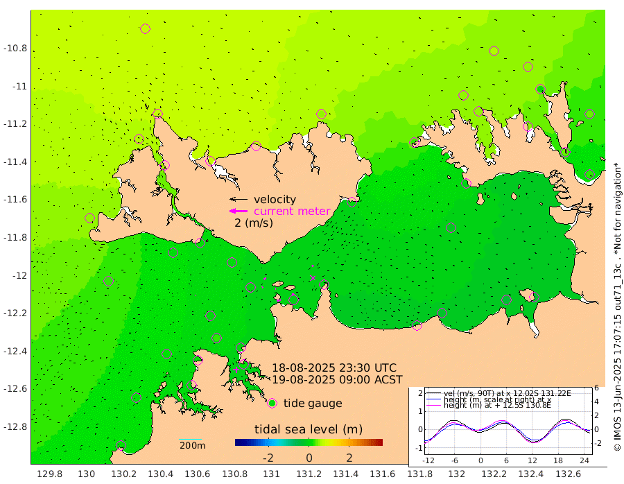 46cm/s -103T +4cm/s rms + 6cm/s 51T. Darwin_C1 52m 29cm/s -86T +4cm/s rms + 7cm/s -161T. Darwin_CW1 22m 11cm/s -117T +4cm/s rms + 8cm/s 61T. Darwin_CW2 34m 22cm/s -131T +3cm/s rms + 9cm/s 98T. Darwin_CW3 22m 7cm/s -90T +5cm/s rms + 7cm/s 88T. Darwin_C3 56m 29cm/s -115T +2cm/s rms + 9cm/s -126T. Darwin_CTbW 22m 3cm/s 86T +1cm/s rms + 1cm/s -47T. DARBGF 30m 2cm/s 165T +4cm/s rms + 3cm/s 80T. NRSDAR 19m 71cm Goodrich Bank 14cm Point Jenny 16cm Native Point 13cm Fish Reef 12cm Tapa Bay 49cm Point Fawcett (Offshore) 10cm Burge Point 7cm Munkunuwa 25cm Beagle A 4cm Parsons Bank 7cm Fenton Patches 3cm Hancox Shoal Area 3cm Nightcliff 13cm Darwin 30cm Charles Point Patches -1cm Glyde Point -17cm Chambers Bay -29cm Point Stuart -7cm Cape Hotham -15cm Christine Reef -37cm West Alligator Head -39cm East Field Island -9cm Two Hills Bay 3cm Camp Point 20cm Medina Inlet South 57cm South Barlow Point 62cm St. Asaph Bay 69cm Cape Van Dieman 73cm Snake Bay 67cm Cache Point 55cm Point Jahleel (Off) 33cm Cape Don 54cm Port Essington 50cm Smith Point - West 52cm NW Peacock Island 64cm North Of Jones Shoal 21cm Peacock Island 36cm Point David 49cm D'urville Point 32cm Copeland Island 43cm One Tree Point