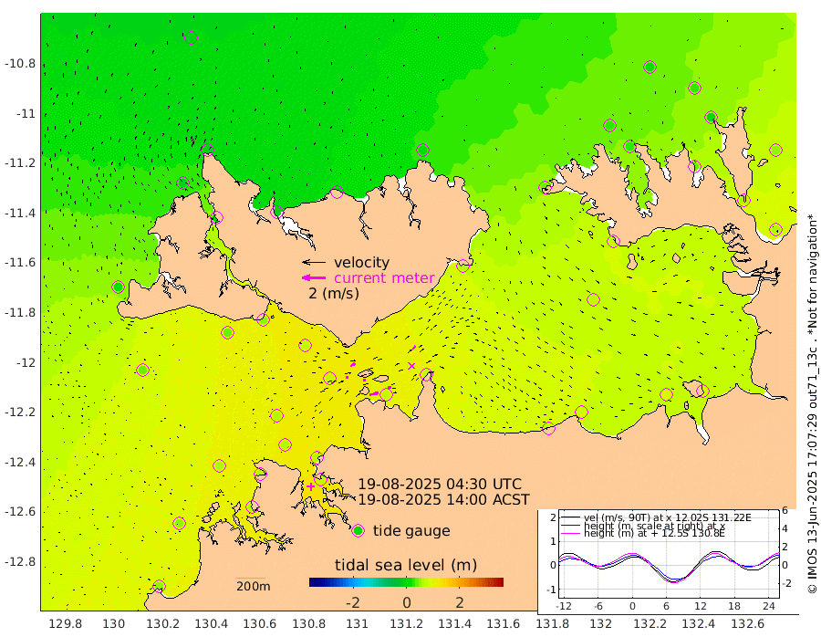 73cm/s 78T +4cm/s rms + 6cm/s 51T. Darwin_C1 52m 32cm/s 83T +4cm/s rms + 7cm/s -161T. Darwin_CW1 22m 19cm/s 75T +4cm/s rms + 8cm/s 61T. Darwin_CW2 34m 35cm/s 46T +3cm/s rms + 9cm/s 98T. Darwin_CW3 22m 24cm/s 91T +5cm/s rms + 7cm/s 88T. Darwin_C3 56m 47cm/s 63T +2cm/s rms + 9cm/s -126T. Darwin_CTbW 22m 1cm/s 25T +1cm/s rms + 1cm/s -47T. DARBGF 30m 4cm/s -17T +4cm/s rms + 3cm/s 80T. NRSDAR 19m -11cm Goodrich Bank 52cm Point Jenny 50cm Native Point 61cm Fish Reef 58cm Tapa Bay 17cm Point Fawcett (Offshore) 66cm Burge Point 44cm Munkunuwa 42cm Beagle A 75cm Parsons Bank 65cm Fenton Patches 72cm Hancox Shoal Area 65cm Nightcliff 77cm Darwin 64cm Charles Point Patches 76cm Glyde Point 75cm Chambers Bay 88cm Point Stuart 76cm Cape Hotham 68cm Christine Reef 92cm West Alligator Head 91cm East Field Island 76cm Two Hills Bay 63cm Camp Point 55cm Medina Inlet South 11cm South Barlow Point -5cm St. Asaph Bay -7cm Cape Van Dieman -2cm Snake Bay 0cm Cache Point 11cm Point Jahleel (Off) 44cm Cape Don 28cm Port Essington 28cm Smith Point - West 32cm NW Peacock Island 11cm North Of Jones Shoal 7cm Peacock Island 61cm Point David 38cm D'urville Point 64cm Copeland Island 54cm One Tree Point