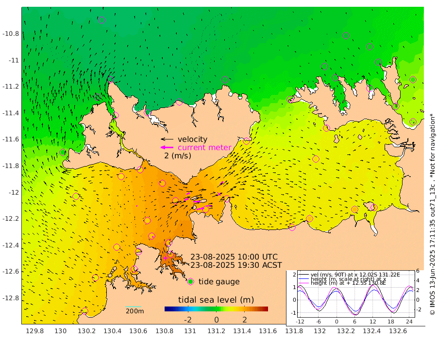 117cm/s 80T +4cm/s rms + 6cm/s 51T. Darwin_C1 52m 92cm/s 92T +4cm/s rms + 7cm/s -161T. Darwin_CW1 22m 74cm/s 70T +4cm/s rms + 8cm/s 61T. Darwin_CW2 34m 77cm/s 44T +3cm/s rms + 9cm/s 98T. Darwin_CW3 22m 110cm/s 89T +5cm/s rms + 7cm/s 88T. Darwin_C3 56m 53cm/s 65T +2cm/s rms + 9cm/s -126T. Darwin_CTbW 22m 9cm/s -44T +1cm/s rms + 1cm/s -47T. DARBGF 30m 22cm/s -44T +4cm/s rms + 3cm/s 80T. NRSDAR 19m -61cm Goodrich Bank 112cm Point Jenny 108cm Native Point 135cm Fish Reef 141cm Tapa Bay 16cm Point Fawcett (Offshore) 167cm Burge Point 130cm Munkunuwa 83cm Beagle A 173cm Parsons Bank 153cm Fenton Patches 173cm Hancox Shoal Area 169cm Nightcliff 195cm Darwin 162cm Charles Point Patches 158cm Glyde Point 153cm Chambers Bay 161cm Point Stuart 149cm Cape Hotham 132cm Christine Reef 174cm West Alligator Head 174cm East Field Island 127cm Two Hills Bay 123cm Camp Point 140cm Medina Inlet South 2cm South Barlow Point -28cm St. Asaph Bay -58cm Cape Van Dieman -52cm Snake Bay -49cm Cache Point -23cm Point Jahleel (Off) 43cm Cape Don -1cm Port Essington -6cm Smith Point - West -4cm NW Peacock Island -28cm North Of Jones Shoal -6cm Peacock Island 41cm Point David 4cm D'urville Point 48cm Copeland Island 34cm One Tree Point