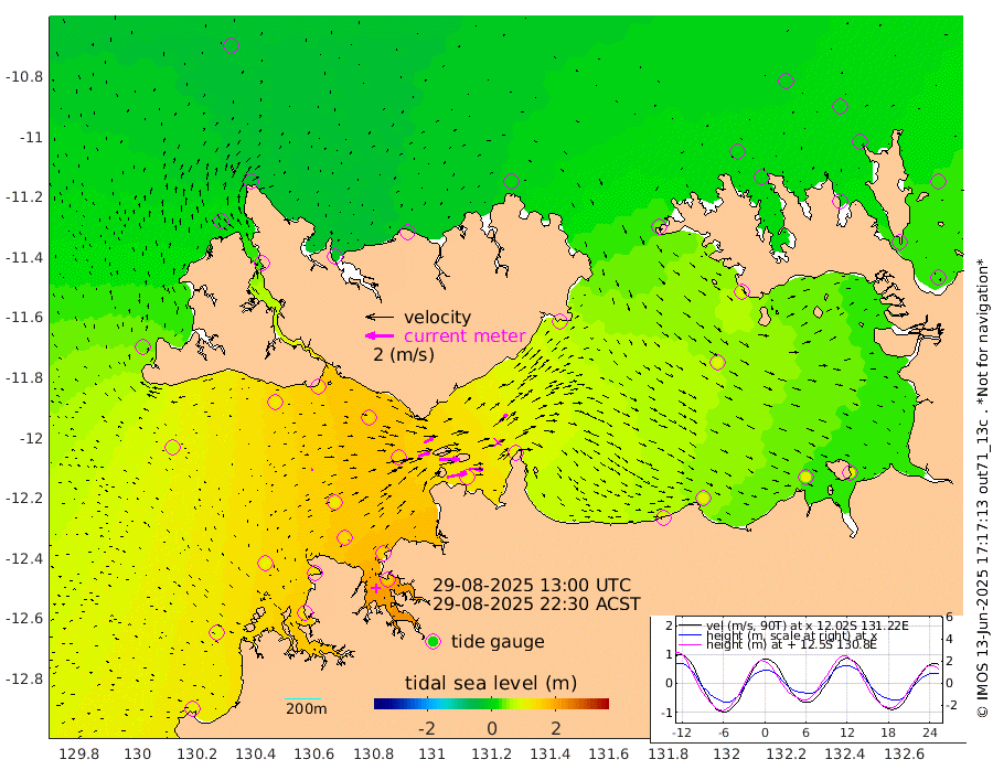 143cm/s 78T +4cm/s rms + 6cm/s 51T. Darwin_C1 52m 104cm/s 93T +4cm/s rms + 7cm/s -161T. Darwin_CW1 22m 89cm/s 72T +4cm/s rms + 8cm/s 61T. Darwin_CW2 34m 76cm/s 46T +3cm/s rms + 9cm/s 98T. Darwin_CW3 22m 146cm/s 89T +5cm/s rms + 7cm/s 88T. Darwin_C3 56m 73cm/s 66T +2cm/s rms + 9cm/s -126T. Darwin_CTbW 22m 12cm/s 59T +1cm/s rms + 1cm/s -47T. DARBGF 30m 8cm/s 24T +4cm/s rms + 3cm/s 80T. NRSDAR 19m -26cm Goodrich Bank 102cm Point Jenny 101cm Native Point 112cm Fish Reef 130cm Tapa Bay 40cm Point Fawcett (Offshore) 124cm Burge Point 120cm Munkunuwa 70cm Beagle A 141cm Parsons Bank 117cm Fenton Patches 148cm Hancox Shoal Area 149cm Nightcliff 160cm Darwin 138cm Charles Point Patches 119cm Glyde Point 113cm Chambers Bay 108cm Point Stuart 108cm Cape Hotham 97cm Christine Reef 120cm West Alligator Head 109cm East Field Island 95cm Two Hills Bay 83cm Camp Point 126cm Medina Inlet South 25cm South Barlow Point 6cm St. Asaph Bay -24cm Cape Van Dieman -17cm Snake Bay -20cm Cache Point 0cm Point Jahleel (Off) 40cm Cape Don 7cm Port Essington 10cm Smith Point - West 6cm NW Peacock Island -4cm North Of Jones Shoal 0cm Peacock Island 27cm Point David 12cm D'urville Point 31cm Copeland Island 25cm One Tree Point