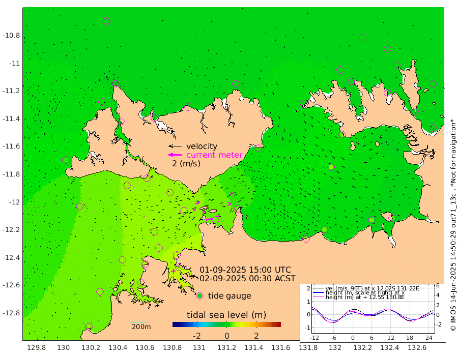 104cm/s 78T +4cm/s rms + 6cm/s 51T. Darwin_C1 52m 54cm/s 93T +4cm/s rms + 7cm/s -161T. Darwin_CW1 22m 42cm/s 72T +4cm/s rms + 8cm/s 61T. Darwin_CW2 34m 44cm/s 52T +3cm/s rms + 9cm/s 98T. Darwin_CW3 22m 56cm/s 89T +5cm/s rms + 7cm/s 88T. Darwin_C3 56m 67cm/s 65T +2cm/s rms + 9cm/s -126T. Darwin_CTbW 22m 12cm/s 81T +1cm/s rms + 1cm/s -47T. DARBGF 30m 8cm/s 91T +4cm/s rms + 3cm/s 80T. NRSDAR 19m -4cm Goodrich Bank 53cm Point Jenny 52cm Native Point 46cm Fish Reef 57cm Tapa Bay 24cm Point Fawcett (Offshore) 47cm Burge Point 47cm Munkunuwa 39cm Beagle A 53cm Parsons Bank 52cm Fenton Patches 61cm Hancox Shoal Area 68cm Nightcliff 55cm Darwin 49cm Charles Point Patches 44cm Glyde Point 47cm Chambers Bay 38cm Point Stuart 36cm Cape Hotham 51cm Christine Reef 45cm West Alligator Head 39cm East Field Island 36cm Two Hills Bay 29cm Camp Point 49cm Medina Inlet South 16cm South Barlow Point 11cm St. Asaph Bay -4cm Cape Van Dieman -5cm Snake Bay 0cm Cache Point 6cm Point Jahleel (Off) 19cm Cape Don 2cm Port Essington 10cm Smith Point - West 5cm NW Peacock Island 2cm North Of Jones Shoal 0cm Peacock Island 1cm Point David 8cm D'urville Point 3cm Copeland Island 2cm One Tree Point