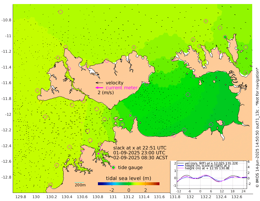4cm/s 92T +4cm/s rms + 6cm/s 51T. Darwin_C1 52m 4cm/s 75T +4cm/s rms + 7cm/s -161T. Darwin_CW1 22m 15cm/s 78T +4cm/s rms + 8cm/s 61T. Darwin_CW2 34m 3cm/s -138T +3cm/s rms + 9cm/s 98T. Darwin_CW3 22m 27cm/s 88T +5cm/s rms + 7cm/s 88T. Darwin_C3 56m 2cm/s -96T +2cm/s rms + 9cm/s -126T. Darwin_CTbW 22m 13cm/s 86T +1cm/s rms + 1cm/s -47T. DARBGF 30m 12cm/s 122T +4cm/s rms + 3cm/s 80T. NRSDAR 19m 62cm Goodrich Bank 64cm Point Jenny 68cm Native Point 65cm Fish Reef 71cm Tapa Bay 66cm Point Fawcett (Offshore) 76cm Burge Point 71cm Munkunuwa 67cm Beagle A 70cm Parsons Bank 68cm Fenton Patches 61cm Hancox Shoal Area 59cm Nightcliff 76cm Darwin 81cm Charles Point Patches 40cm Glyde Point -1cm Chambers Bay -6cm Point Stuart 26cm Cape Hotham 2cm Christine Reef -14cm West Alligator Head -26cm East Field Island 12cm Two Hills Bay 21cm Camp Point 73cm Medina Inlet South 72cm South Barlow Point 65cm St. Asaph Bay 63cm Cape Van Dieman 68cm Snake Bay 59cm Cache Point 53cm Point Jahleel (Off) 41cm Cape Don 53cm Port Essington 49cm Smith Point - West 51cm NW Peacock Island 49cm North Of Jones Shoal 17cm Peacock Island 48cm Point David 50cm D'urville Point 43cm Copeland Island 46cm One Tree Point