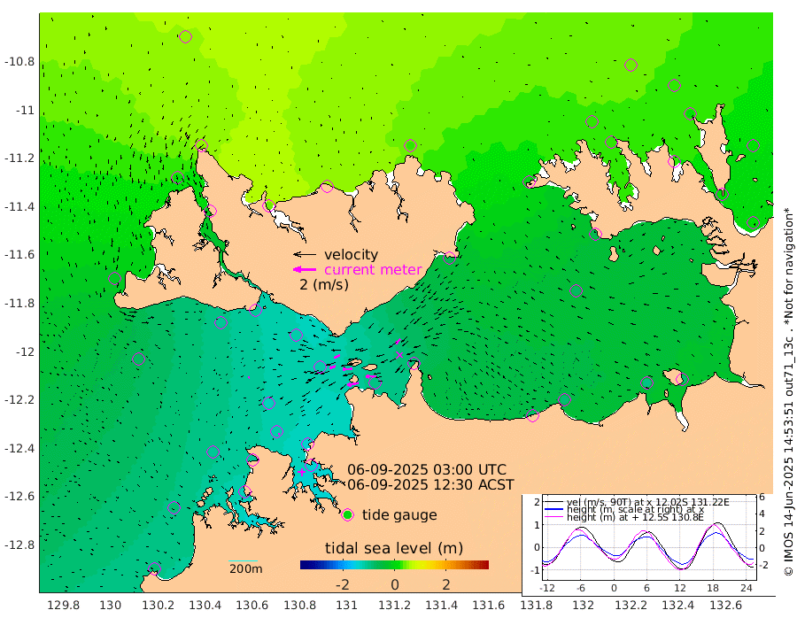 102cm/s -101T +4cm/s rms + 6cm/s 51T. Darwin_C1 52m 90cm/s -91T +4cm/s rms + 7cm/s -161T. Darwin_CW1 22m 58cm/s -107T +4cm/s rms + 8cm/s 61T. Darwin_CW2 34m 57cm/s -136T +3cm/s rms + 9cm/s 98T. Darwin_CW3 22m 86cm/s -91T +5cm/s rms + 7cm/s 88T. Darwin_C3 56m 54cm/s -115T +2cm/s rms + 9cm/s -126T. Darwin_CTbW 22m 11cm/s -113T +1cm/s rms + 1cm/s -47T. DARBGF 30m 9cm/s -98T +4cm/s rms + 3cm/s 80T. NRSDAR 19m 50cm Goodrich Bank -89cm Point Jenny -87cm Native Point -103cm Fish Reef -109cm Tapa Bay -16cm Point Fawcett (Offshore) -126cm Burge Point -108cm Munkunuwa -75cm Beagle A -119cm Parsons Bank -124cm Fenton Patches -121cm Hancox Shoal Area -141cm Nightcliff -139cm Darwin -113cm Charles Point Patches -99cm Glyde Point -87cm Chambers Bay -80cm Point Stuart -85cm Cape Hotham -75cm Christine Reef -91cm West Alligator Head -88cm East Field Island -62cm Two Hills Bay -66cm Camp Point -109cm Medina Inlet South -7cm South Barlow Point 13cm St. Asaph Bay 48cm Cape Van Dieman 44cm Snake Bay 47cm Cache Point 28cm Point Jahleel (Off) -7cm Cape Don 30cm Port Essington 28cm Smith Point - West 33cm NW Peacock Island 38cm North Of Jones Shoal 12cm Peacock Island 21cm Point David 29cm D'urville Point 17cm Copeland Island 21cm One Tree Point