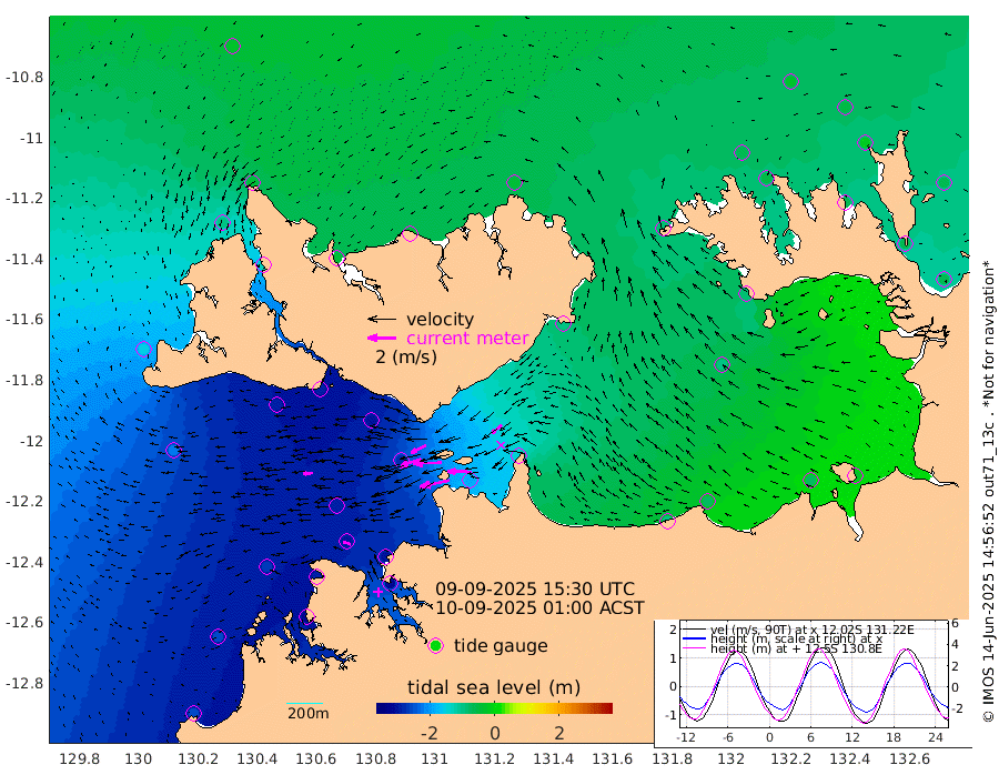 214cm/s -102T +4cm/s rms + 6cm/s 51T. Darwin_C1 52m 164cm/s -89T +4cm/s rms + 7cm/s -161T. Darwin_CW1 22m 146cm/s -108T +4cm/s rms + 8cm/s 61T. Darwin_CW2 34m 94cm/s -130T +3cm/s rms + 9cm/s 98T. Darwin_CW3 22m 201cm/s -91T +5cm/s rms + 7cm/s 88T. Darwin_C3 56m 118cm/s -115T +2cm/s rms + 9cm/s -126T. Darwin_CTbW 22m 68cm/s -95T +1cm/s rms + 1cm/s -47T. DARBGF 30m 56cm/s -68T +4cm/s rms + 3cm/s 80T. NRSDAR 19m -24cm Goodrich Bank -258cm Point Jenny -258cm Native Point -265cm Fish Reef -286cm Tapa Bay -146cm Point Fawcett (Offshore) -305cm Burge Point -286cm Munkunuwa -222cm Beagle A -298cm Parsons Bank -285cm Fenton Patches -280cm Hancox Shoal Area -298cm Nightcliff -315cm Darwin -293cm Charles Point Patches -191cm Glyde Point -98cm Chambers Bay -73cm Point Stuart -141cm Cape Hotham -92cm Christine Reef -69cm West Alligator Head -26cm East Field Island -90cm Two Hills Bay -99cm Camp Point -282cm Medina Inlet South -134cm South Barlow Point -90cm St. Asaph Bay -34cm Cape Van Dieman -42cm Snake Bay -30cm Cache Point -44cm Point Jahleel (Off) -89cm Cape Don -57cm Port Essington -56cm Smith Point - West -48cm NW Peacock Island -29cm North Of Jones Shoal -13cm Peacock Island -65cm Point David -59cm D'urville Point -65cm Copeland Island -62cm One Tree Point