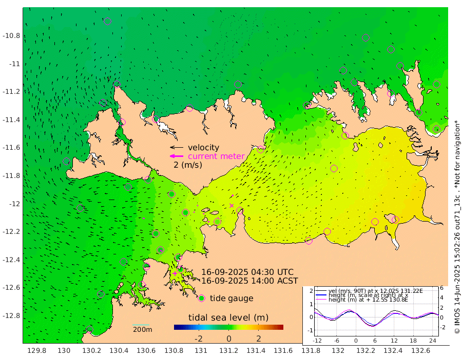 21cm/s 79T +4cm/s rms + 6cm/s 51T. Darwin_C1 52m 6cm/s 61T +4cm/s rms + 7cm/s -161T. Darwin_CW1 22m 12cm/s -103T +4cm/s rms + 8cm/s 61T. Darwin_CW2 34m 25cm/s 37T +3cm/s rms + 9cm/s 98T. Darwin_CW3 22m 16cm/s -97T +5cm/s rms + 7cm/s 88T. Darwin_C3 56m 13cm/s 61T +2cm/s rms + 9cm/s -126T. Darwin_CTbW 22m 31cm/s -88T +1cm/s rms + 1cm/s -47T. DARBGF 30m 33cm/s -55T +4cm/s rms + 3cm/s 80T. NRSDAR 19m -65cm Goodrich Bank -22cm Point Jenny -25cm Native Point -17cm Fish Reef -18cm Tapa Bay -60cm Point Fawcett (Offshore) -8cm Burge Point -34cm Munkunuwa -31cm Beagle A 1cm Parsons Bank -5cm Fenton Patches 9cm Hancox Shoal Area -3cm Nightcliff 2cm Darwin -17cm Charles Point Patches 41cm Glyde Point 86cm Chambers Bay 105cm Point Stuart 57cm Cape Hotham 75cm Christine Reef 118cm West Alligator Head 136cm East Field Island 68cm Two Hills Bay 57cm Camp Point -26cm Medina Inlet South -65cm South Barlow Point -73cm St. Asaph Bay -65cm Cape Van Dieman -64cm Snake Bay -55cm Cache Point -39cm Point Jahleel (Off) 0cm Cape Don -25cm Port Essington -25cm Smith Point - West -18cm NW Peacock Island -40cm North Of Jones Shoal -11cm Peacock Island 18cm Point David -14cm D'urville Point 24cm Copeland Island 9cm One Tree Point
