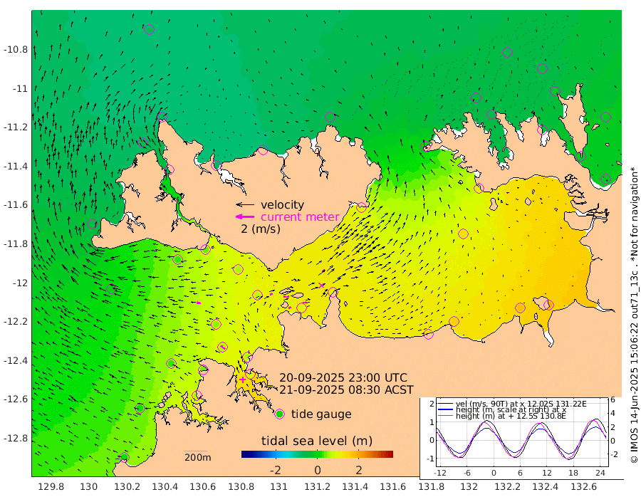 26cm/s 79T +4cm/s rms + 6cm/s 51T. Darwin_C1 52m 43cm/s 89T +4cm/s rms + 7cm/s -161T. Darwin_CW1 22m 25cm/s 73T +4cm/s rms + 8cm/s 61T. Darwin_CW2 34m 42cm/s 39T +3cm/s rms + 9cm/s 98T. Darwin_CW3 22m 64cm/s 91T +5cm/s rms + 7cm/s 88T. Darwin_C3 56m 5cm/s 74T +2cm/s rms + 9cm/s -126T. Darwin_CTbW 22m 48cm/s -81T +1cm/s rms + 1cm/s -47T. DARBGF 30m 57cm/s -51T +4cm/s rms + 3cm/s 80T. NRSDAR 19m -64cm Goodrich Bank 19cm Point Jenny 19cm Native Point 28cm Fish Reef 41cm Tapa Bay -46cm Point Fawcett (Offshore) 65cm Burge Point 32cm Munkunuwa -2cm Beagle A 62cm Parsons Bank 52cm Fenton Patches 72cm Hancox Shoal Area 60cm Nightcliff 87cm Darwin 58cm Charles Point Patches 100cm Glyde Point 139cm Chambers Bay 156cm Point Stuart 102cm Cape Hotham 125cm Christine Reef 177cm West Alligator Head 202cm East Field Island 103cm Two Hills Bay 108cm Camp Point 40cm Medina Inlet South -50cm South Barlow Point -63cm St. Asaph Bay -69cm Cape Van Dieman -65cm Snake Bay -64cm Cache Point -42cm Point Jahleel (Off) 4cm Cape Don -39cm Port Essington -47cm Smith Point - West -44cm NW Peacock Island -58cm North Of Jones Shoal -20cm Peacock Island -19cm Point David -45cm D'urville Point -16cm Copeland Island -22cm One Tree Point
