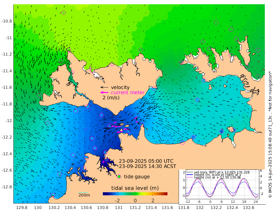 156cm/s -101T +4cm/s rms + 6cm/s 51T. Darwin_C1 52m 136cm/s -92T +4cm/s rms + 7cm/s -161T. Darwin_CW1 22m 78cm/s -106T +4cm/s rms + 8cm/s 61T. Darwin_CW2 34m 99cm/s -137T +3cm/s rms + 9cm/s 98T. Darwin_CW3 22m 149cm/s -91T +5cm/s rms + 7cm/s 88T. Darwin_C3 56m 73cm/s -116T +2cm/s rms + 9cm/s -126T. Darwin_CTbW 22m 18cm/s 123T +1cm/s rms + 1cm/s -47T. DARBGF 30m 29cm/s 144T +4cm/s rms + 3cm/s 80T. NRSDAR 19m 44cm Goodrich Bank -141cm Point Jenny -137cm Native Point -171cm Fish Reef -172cm Tapa Bay -40cm Point Fawcett (Offshore) -207cm Burge Point -159cm Munkunuwa -116cm Beagle A -207cm Parsons Bank -194cm Fenton Patches -207cm Hancox Shoal Area -210cm Nightcliff -242cm Darwin -202cm Charles Point Patches -204cm Glyde Point -203cm Chambers Bay -217cm Point Stuart -193cm Cape Hotham -183cm Christine Reef -238cm West Alligator Head -244cm East Field Island -175cm Two Hills Bay -164cm Camp Point -179cm Medina Inlet South -25cm South Barlow Point 8cm St. Asaph Bay 45cm Cape Van Dieman 34cm Snake Bay 32cm Cache Point 3cm Point Jahleel (Off) -68cm Cape Don -11cm Port Essington -7cm Smith Point - West -6cm NW Peacock Island 13cm North Of Jones Shoal 2cm Peacock Island -37cm Point David -12cm D'urville Point -42cm Copeland Island -38cm One Tree Point