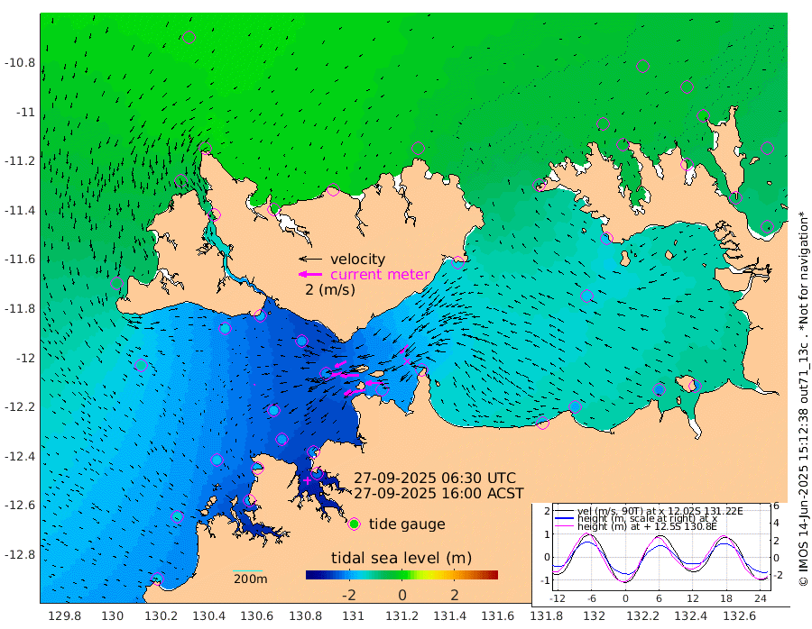 189cm/s -101T +4cm/s rms + 6cm/s 51T. Darwin_C1 52m 152cm/s -91T +4cm/s rms + 7cm/s -161T. Darwin_CW1 22m 86cm/s -105T +4cm/s rms + 8cm/s 61T. Darwin_CW2 34m 98cm/s -136T +3cm/s rms + 9cm/s 98T. Darwin_CW3 22m 157cm/s -90T +5cm/s rms + 7cm/s 88T. Darwin_C3 56m 109cm/s -115T +2cm/s rms + 9cm/s -126T. Darwin_CTbW 22m 8cm/s -167T +1cm/s rms + 1cm/s -47T. DARBGF 30m 15cm/s 164T +4cm/s rms + 3cm/s 80T. NRSDAR 19m 4cm Goodrich Bank -148cm Point Jenny -146cm Native Point -164cm Fish Reef -180cm Tapa Bay -71cm Point Fawcett (Offshore) -190cm Burge Point -157cm Munkunuwa -118cm Beagle A -198cm Parsons Bank -179cm Fenton Patches -206cm Hancox Shoal Area -212cm Nightcliff -232cm Darwin -202cm Charles Point Patches -191cm Glyde Point -185cm Chambers Bay -189cm Point Stuart -179cm Cape Hotham -168cm Christine Reef -206cm West Alligator Head -205cm East Field Island -165cm Two Hills Bay -155cm Camp Point -180cm Medina Inlet South -55cm South Barlow Point -28cm St. Asaph Bay 4cm Cape Van Dieman -11cm Snake Bay -6cm Cache Point -30cm Point Jahleel (Off) -86cm Cape Don -39cm Port Essington -38cm Smith Point - West -38cm NW Peacock Island -26cm North Of Jones Shoal -11cm Peacock Island -68cm Point David -43cm D'urville Point -70cm Copeland Island -68cm One Tree Point