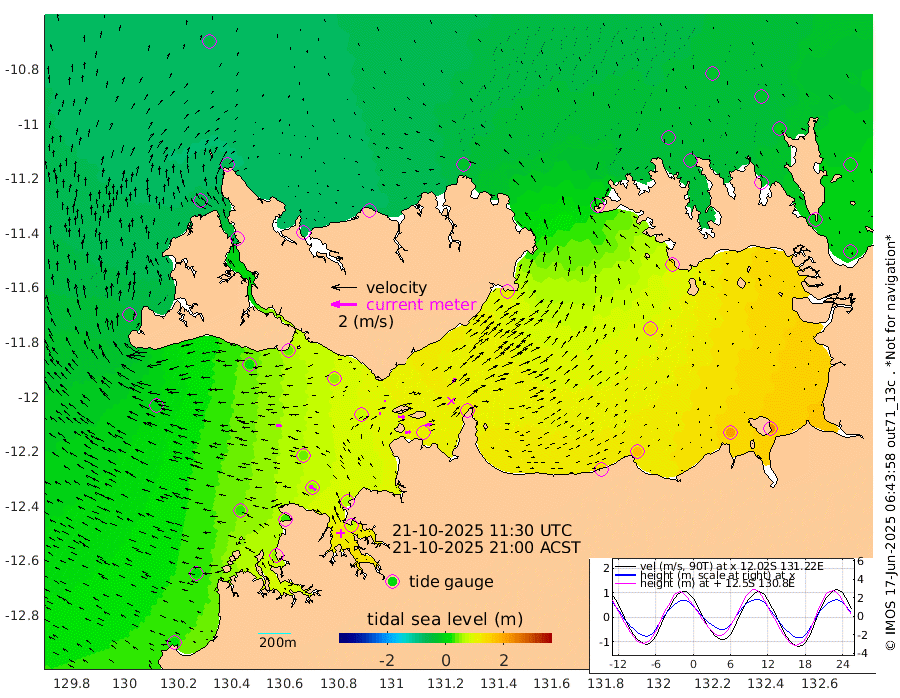 40cm/s 82T +4cm/s rms + 6cm/s 51T. Darwin_C1 52m 51cm/s 89T +4cm/s rms + 7cm/s -161T. Darwin_CW1 22m 14cm/s 73T +4cm/s rms + 8cm/s 61T. Darwin_CW2 34m 41cm/s 39T +3cm/s rms + 9cm/s 98T. Darwin_CW3 22m 50cm/s 93T +5cm/s rms + 7cm/s 88T. Darwin_C3 56m 10cm/s 72T +2cm/s rms + 9cm/s -126T. Darwin_CTbW 22m 47cm/s -81T +1cm/s rms + 1cm/s -47T. DARBGF 30m 60cm/s -53T +4cm/s rms + 3cm/s 80T. NRSDAR 19m -55cm Goodrich Bank 16cm Point Jenny 11cm Native Point 32cm Fish Reef 32cm Tapa Bay -31cm Point Fawcett (Offshore) 54cm Burge Point 19cm Munkunuwa -1cm Beagle A 55cm Parsons Bank 44cm Fenton Patches 68cm Hancox Shoal Area 59cm Nightcliff 78cm Darwin 51cm Charles Point Patches 102cm Glyde Point 154cm Chambers Bay 179cm Point Stuart 120cm Cape Hotham 141cm Christine Reef 203cm West Alligator Head 230cm East Field Island 126cm Two Hills Bay 115cm Camp Point 34cm Medina Inlet South -46cm South Barlow Point -52cm St. Asaph Bay -60cm Cape Van Dieman -57cm Snake Bay -47cm Cache Point -26cm Point Jahleel (Off) 19cm Cape Don -23cm Port Essington -27cm Smith Point - West -24cm NW Peacock Island -31cm North Of Jones Shoal -10cm Peacock Island -1cm Point David -26cm D'urville Point 3cm Copeland Island 0cm One Tree Point
