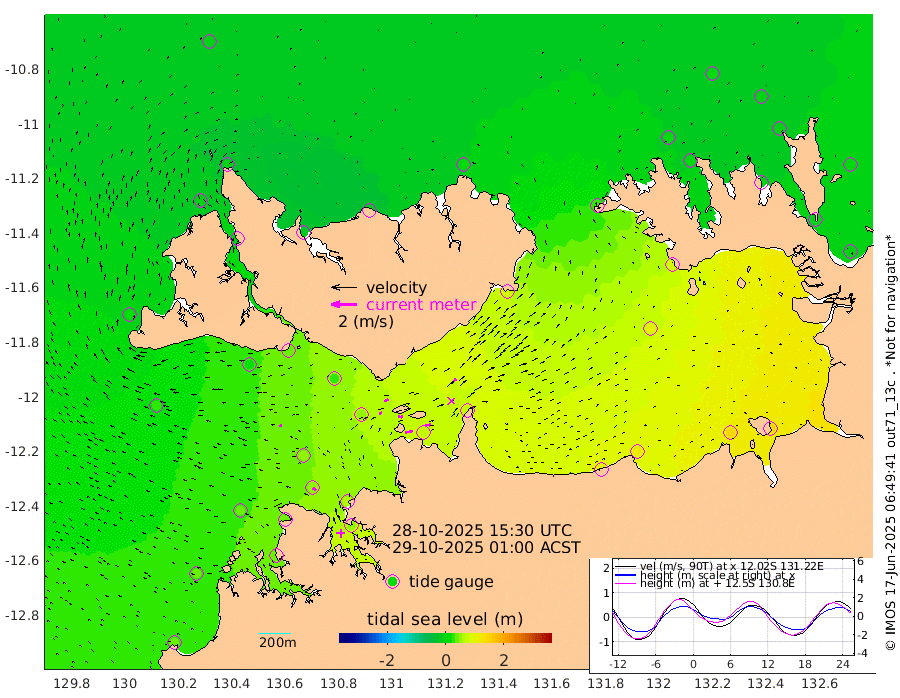 55cm/s 78T +4cm/s rms + 6cm/s 51T. Darwin_C1 52m 46cm/s 91T +4cm/s rms + 7cm/s -161T. Darwin_CW1 22m 21cm/s 70T +4cm/s rms + 8cm/s 61T. Darwin_CW2 34m 40cm/s 47T +3cm/s rms + 9cm/s 98T. Darwin_CW3 22m 37cm/s 92T +5cm/s rms + 7cm/s 88T. Darwin_C3 56m 37cm/s 67T +2cm/s rms + 9cm/s -126T. Darwin_CTbW 22m 19cm/s -77T +1cm/s rms + 1cm/s -47T. DARBGF 30m 29cm/s -51T +4cm/s rms + 3cm/s 80T. NRSDAR 19m -7cm Goodrich Bank 40cm Point Jenny 37cm Native Point 40cm Fish Reef 42cm Tapa Bay 13cm Point Fawcett (Offshore) 45cm Burge Point 17cm Munkunuwa 33cm Beagle A 33cm Parsons Bank 50cm Fenton Patches 50cm Hancox Shoal Area 57cm Nightcliff 54cm Darwin 47cm Charles Point Patches 76cm Glyde Point 119cm Chambers Bay 120cm Point Stuart 78cm Cape Hotham 111cm Christine Reef 135cm West Alligator Head 156cm East Field Island 89cm Two Hills Bay 87cm Camp Point 37cm Medina Inlet South -4cm South Barlow Point -2cm St. Asaph Bay -11cm Cape Van Dieman -12cm Snake Bay -1cm Cache Point 6cm Point Jahleel (Off) 31cm Cape Don 1cm Port Essington 1cm Smith Point - West -1cm NW Peacock Island 0cm North Of Jones Shoal -1cm Peacock Island -5cm Point David -3cm D'urville Point -4cm Copeland Island 2cm One Tree Point