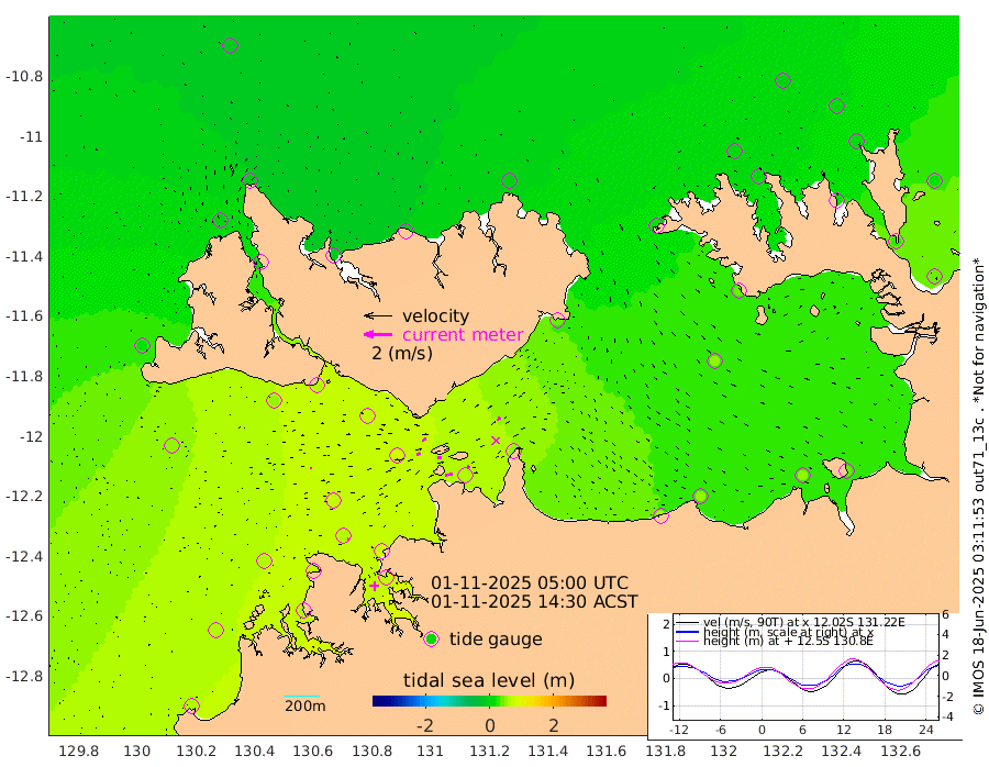 52cm/s 78T +4cm/s rms + 6cm/s 51T. Darwin_C1 52m 19cm/s 82T +4cm/s rms + 7cm/s -161T. Darwin_CW1 22m 25cm/s 73T +4cm/s rms + 8cm/s 61T. Darwin_CW2 34m 28cm/s 45T +3cm/s rms + 9cm/s 98T. Darwin_CW3 22m 26cm/s 88T +5cm/s rms + 7cm/s 88T. Darwin_C3 56m 32cm/s 64T +2cm/s rms + 9cm/s -126T. Darwin_CTbW 22m 14cm/s 89T +1cm/s rms + 1cm/s -47T. DARBGF 30m 13cm/s 112T +4cm/s rms + 3cm/s 80T. NRSDAR 19m -18cm Goodrich Bank 65cm Point Jenny 63cm Native Point 59cm Fish Reef 75cm Tapa Bay 20cm Point Fawcett (Offshore) 67cm Burge Point 56cm Munkunuwa 50cm Beagle A 71cm Parsons Bank 72cm Fenton Patches 81cm Hancox Shoal Area 85cm Nightcliff 73cm Darwin 65cm Charles Point Patches 58cm Glyde Point 61cm Chambers Bay 47cm Point Stuart 53cm Cape Hotham 50cm Christine Reef 49cm West Alligator Head 43cm East Field Island 41cm Two Hills Bay 42cm Camp Point 57cm Medina Inlet South 8cm South Barlow Point 0cm St. Asaph Bay -14cm Cape Van Dieman -15cm Snake Bay -11cm Cache Point -1cm Point Jahleel (Off) 20cm Cape Don 5cm Port Essington 10cm Smith Point - West 10cm NW Peacock Island -4cm North Of Jones Shoal 1cm Peacock Island 32cm Point David 15cm D'urville Point 36cm Copeland Island 22cm One Tree Point