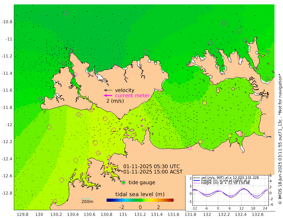 42cm/s 78T +4cm/s rms + 6cm/s 51T. Darwin_C1 52m 16cm/s 85T +4cm/s rms + 7cm/s -161T. Darwin_CW1 22m 25cm/s 73T +4cm/s rms + 8cm/s 61T. Darwin_CW2 34m 28cm/s 41T +3cm/s rms + 9cm/s 98T. Darwin_CW3 22m 29cm/s 88T +5cm/s rms + 7cm/s 88T. Darwin_C3 56m 24cm/s 64T +2cm/s rms + 9cm/s -126T. Darwin_CTbW 22m 9cm/s 84T +1cm/s rms + 1cm/s -47T. DARBGF 30m 8cm/s 104T +4cm/s rms + 3cm/s 80T. NRSDAR 19m -29cm Goodrich Bank 60cm Point Jenny 58cm Native Point 57cm Fish Reef 72cm Tapa Bay 11cm Point Fawcett (Offshore) 66cm Burge Point 52cm Munkunuwa 45cm Beagle A 69cm Parsons Bank 72cm Fenton Patches 82cm Hancox Shoal Area 86cm Nightcliff 75cm Darwin 65cm Charles Point Patches 64cm Glyde Point 73cm Chambers Bay 61cm Point Stuart 61cm Cape Hotham 59cm Christine Reef 66cm West Alligator Head 64cm East Field Island 48cm Two Hills Bay 50cm Camp Point 55cm Medina Inlet South -2cm South Barlow Point -10cm St. Asaph Bay -26cm Cape Van Dieman -26cm Snake Bay -21cm Cache Point -9cm Point Jahleel (Off) 15cm Cape Don -4cm Port Essington 0cm Smith Point - West 0cm NW Peacock Island -13cm North Of Jones Shoal -3cm Peacock Island 24cm Point David 5cm D'urville Point 28cm Copeland Island 15cm One Tree Point