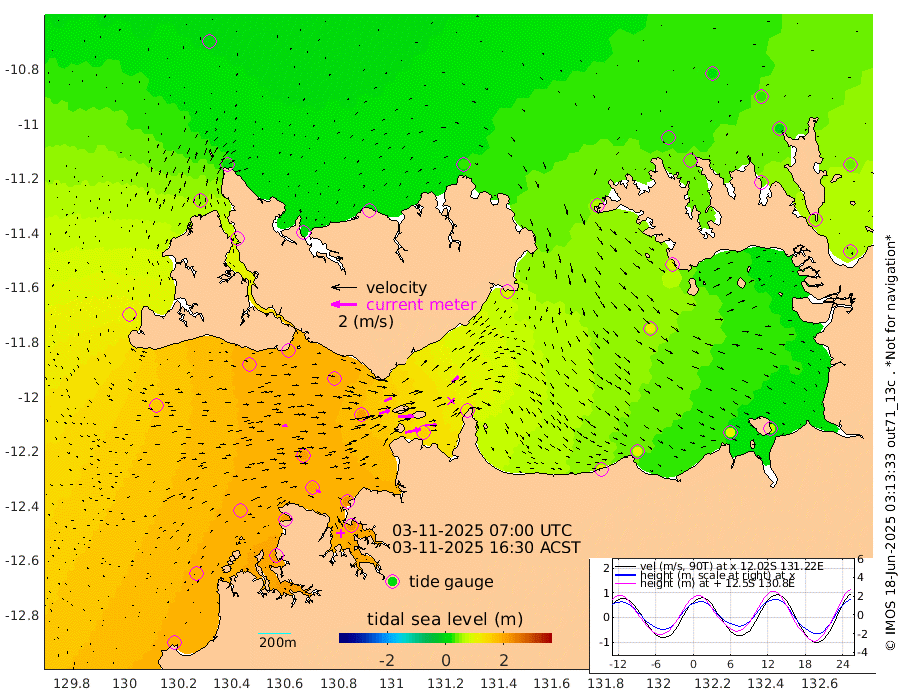 123cm/s 78T +4cm/s rms + 6cm/s 51T. Darwin_C1 52m 91cm/s 90T +4cm/s rms + 7cm/s -161T. Darwin_CW1 22m 83cm/s 74T +4cm/s rms + 8cm/s 61T. Darwin_CW2 34m 65cm/s 44T +3cm/s rms + 9cm/s 98T. Darwin_CW3 22m 122cm/s 89T +5cm/s rms + 7cm/s 88T. Darwin_C3 56m 64cm/s 65T +2cm/s rms + 9cm/s -126T. Darwin_CTbW 22m 39cm/s 84T +1cm/s rms + 1cm/s -47T. DARBGF 30m 36cm/s 112T +4cm/s rms + 3cm/s 80T. NRSDAR 19m 4cm Goodrich Bank 183cm Point Jenny 181cm Native Point 183cm Fish Reef 203cm Tapa Bay 94cm Point Fawcett (Offshore) 208cm Burge Point 183cm Munkunuwa 158cm Beagle A 201cm Parsons Bank 206cm Fenton Patches 205cm Hancox Shoal Area 219cm Nightcliff 215cm Darwin 202cm Charles Point Patches 150cm Glyde Point 113cm Chambers Bay 91cm Point Stuart 123cm Cape Hotham 104cm Christine Reef 94cm West Alligator Head 75cm East Field Island 89cm Two Hills Bay 96cm Camp Point 186cm Medina Inlet South 74cm South Barlow Point 51cm St. Asaph Bay 10cm Cape Van Dieman 10cm Snake Bay 14cm Cache Point 27cm Point Jahleel (Off) 63cm Cape Don 32cm Port Essington 38cm Smith Point - West 32cm NW Peacock Island 15cm North Of Jones Shoal 7cm Peacock Island 49cm Point David 40cm D'urville Point 52cm Copeland Island 42cm One Tree Point