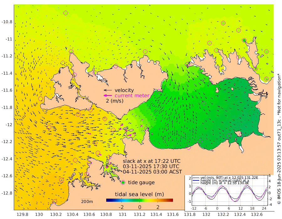 102cm/s 78T +4cm/s rms + 6cm/s 51T. Darwin_C1 52m 66cm/s 86T +4cm/s rms + 7cm/s -161T. Darwin_CW1 22m 60cm/s 74T +4cm/s rms + 8cm/s 61T. Darwin_CW2 34m 25cm/s 64T +3cm/s rms + 9cm/s 98T. Darwin_CW3 22m 66cm/s 87T +5cm/s rms + 7cm/s 88T. Darwin_C3 56m 72cm/s 63T +2cm/s rms + 9cm/s -126T. Darwin_CTbW 22m 60cm/s 91T +1cm/s rms + 1cm/s -47T. DARBGF 30m 60cm/s 121T +4cm/s rms + 3cm/s 80T. NRSDAR 19m 60cm Goodrich Bank 152cm Point Jenny 155cm Native Point 155cm Fish Reef 155cm Tapa Bay 119cm Point Fawcett (Offshore) 162cm Burge Point 159cm Munkunuwa 154cm Beagle A 150cm Parsons Bank 161cm Fenton Patches 129cm Hancox Shoal Area 150cm Nightcliff 147cm Darwin 145cm Charles Point Patches 75cm Glyde Point -5cm Chambers Bay -19cm Point Stuart 45cm Cape Hotham 1cm Christine Reef -31cm West Alligator Head -65cm East Field Island 15cm Two Hills Bay 16cm Camp Point 153cm Medina Inlet South 116cm South Barlow Point 95cm St. Asaph Bay 69cm Cape Van Dieman 74cm Snake Bay 64cm Cache Point 61cm Point Jahleel (Off) 59cm Cape Don 59cm Port Essington 63cm Smith Point - West 58cm NW Peacock Island 50cm North Of Jones Shoal 18cm Peacock Island 53cm Point David 64cm D'urville Point 49cm Copeland Island 51cm One Tree Point