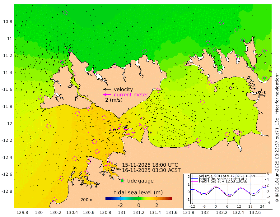 86cm/s 78T +4cm/s rms + 6cm/s 51T. Darwin_C1 52m 62cm/s 92T +4cm/s rms + 7cm/s -161T. Darwin_CW1 22m 58cm/s 73T +4cm/s rms + 8cm/s 61T. Darwin_CW2 34m 48cm/s 45T +3cm/s rms + 9cm/s 98T. Darwin_CW3 22m 89cm/s 89T +5cm/s rms + 7cm/s 88T. Darwin_C3 56m 46cm/s 65T +2cm/s rms + 9cm/s -126T. Darwin_CTbW 22m 15cm/s 75T +1cm/s rms + 1cm/s -47T. DARBGF 30m 11cm/s 99T +4cm/s rms + 3cm/s 80T. NRSDAR 19m -4cm Goodrich Bank 117cm Point Jenny 117cm Native Point 132cm Fish Reef 129cm Tapa Bay 56cm Point Fawcett (Offshore) 146cm Burge Point 120cm Munkunuwa 106cm Beagle A 135cm Parsons Bank 142cm Fenton Patches 129cm Hancox Shoal Area 137cm Nightcliff 154cm Darwin 137cm Charles Point Patches 122cm Glyde Point 101cm Chambers Bay 105cm Point Stuart 104cm Cape Hotham 89cm Christine Reef 112cm West Alligator Head 109cm East Field Island 89cm Two Hills Bay 88cm Camp Point 129cm Medina Inlet South 42cm South Barlow Point 22cm St. Asaph Bay -1cm Cape Van Dieman 2cm Snake Bay 2cm Cache Point 13cm Point Jahleel (Off) 48cm Cape Don 18cm Port Essington 15cm Smith Point - West 12cm NW Peacock Island -1cm North Of Jones Shoal 1cm Peacock Island 23cm Point David 16cm D'urville Point 23cm Copeland Island 23cm One Tree Point