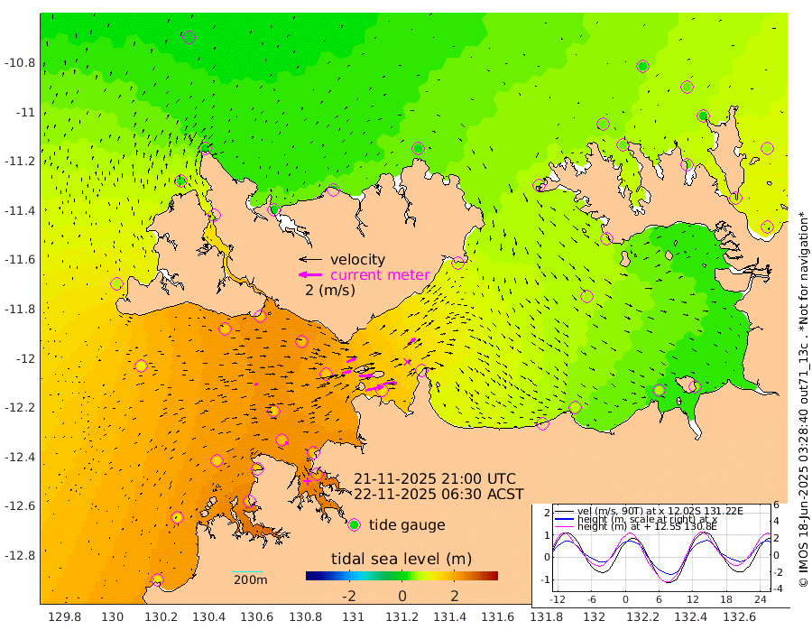 157cm/s 77T +4cm/s rms + 6cm/s 51T. Darwin_C1 52m 120cm/s 88T +4cm/s rms + 7cm/s -161T. Darwin_CW1 22m 75cm/s 75T +4cm/s rms + 8cm/s 61T. Darwin_CW2 34m 83cm/s 45T +3cm/s rms + 9cm/s 98T. Darwin_CW3 22m 115cm/s 89T +5cm/s rms + 7cm/s 88T. Darwin_C3 56m 84cm/s 65T +2cm/s rms + 9cm/s -126T. Darwin_CTbW 22m 29cm/s 84T +1cm/s rms + 1cm/s -47T. DARBGF 30m 28cm/s 105T +4cm/s rms + 3cm/s 80T. NRSDAR 19m -1cm Goodrich Bank 132cm Point Jenny 133cm Native Point 145cm Fish Reef 157cm Tapa Bay 66cm Point Fawcett (Offshore) 168cm Burge Point 151cm Munkunuwa 109cm Beagle A 176cm Parsons Bank 157cm Fenton Patches 168cm Hancox Shoal Area 179cm Nightcliff 194cm Darwin 173cm Charles Point Patches 127cm Glyde Point 71cm Chambers Bay 68cm Point Stuart 102cm Cape Hotham 64cm Christine Reef 66cm West Alligator Head 45cm East Field Island 73cm Two Hills Bay 77cm Camp Point 160cm Medina Inlet South 66cm South Barlow Point 32cm St. Asaph Bay 5cm Cape Van Dieman 19cm Snake Bay 4cm Cache Point 20cm Point Jahleel (Off) 59cm Cape Don 38cm Port Essington 35cm Smith Point - West 36cm NW Peacock Island 22cm North Of Jones Shoal 11cm Peacock Island 69cm Point David 44cm D'urville Point 71cm Copeland Island 64cm One Tree Point