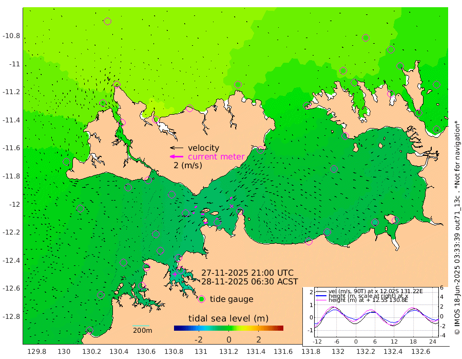 62cm/s -100T +4cm/s rms + 6cm/s 51T. Darwin_C1 52m 25cm/s -92T +4cm/s rms + 7cm/s -161T. Darwin_CW1 22m 28cm/s -108T +4cm/s rms + 8cm/s 61T. Darwin_CW2 34m 40cm/s -136T +3cm/s rms + 9cm/s 98T. Darwin_CW3 22m 41cm/s -91T +5cm/s rms + 7cm/s 88T. Darwin_C3 56m 38cm/s -116T +2cm/s rms + 9cm/s -126T. Darwin_CTbW 22m 5cm/s 130T +1cm/s rms + 1cm/s -47T. DARBGF 30m 7cm/s 160T +4cm/s rms + 3cm/s 80T. NRSDAR 19m 47cm Goodrich Bank -38cm Point Jenny -35cm Native Point -40cm Fish Reef -47cm Tapa Bay 11cm Point Fawcett (Offshore) -53cm Burge Point -39cm Munkunuwa -28cm Beagle A -54cm Parsons Bank -58cm Fenton Patches -64cm Hancox Shoal Area -77cm Nightcliff -60cm Darwin -37cm Charles Point Patches -60cm Glyde Point -87cm Chambers Bay -82cm Point Stuart -64cm Cape Hotham -76cm Christine Reef -95cm West Alligator Head -100cm East Field Island -61cm Two Hills Bay -51cm Camp Point -40cm Medina Inlet South 20cm South Barlow Point 29cm St. Asaph Bay 47cm Cape Van Dieman 44cm Snake Bay 41cm Cache Point 25cm Point Jahleel (Off) -2cm Cape Don 30cm Port Essington 23cm Smith Point - West 25cm NW Peacock Island 32cm North Of Jones Shoal 10cm Peacock Island 14cm Point David 22cm D'urville Point 9cm Copeland Island 15cm One Tree Point