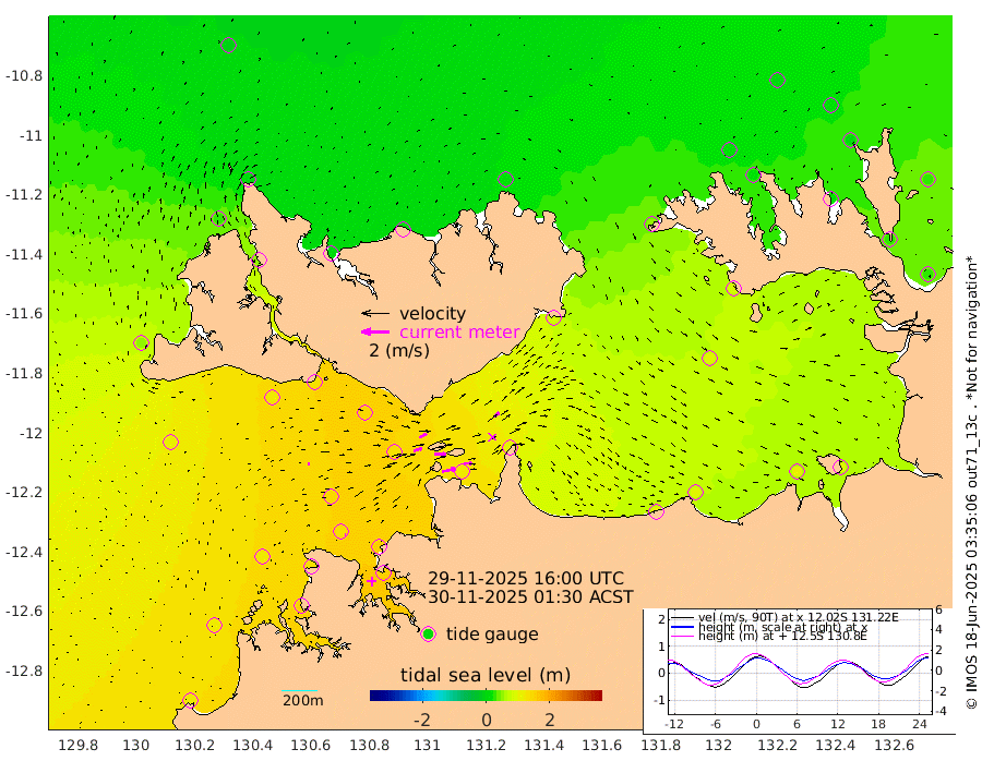 101cm/s 78T +4cm/s rms + 6cm/s 51T. Darwin_C1 52m 58cm/s 90T +4cm/s rms + 7cm/s -161T. Darwin_CW1 22m 61cm/s 72T +4cm/s rms + 8cm/s 61T. Darwin_CW2 34m 53cm/s 49T +3cm/s rms + 9cm/s 98T. Darwin_CW3 22m 87cm/s 89T +5cm/s rms + 7cm/s 88T. Darwin_C3 56m 59cm/s 65T +2cm/s rms + 9cm/s -126T. Darwin_CTbW 22m 13cm/s 71T +1cm/s rms + 1cm/s -47T. DARBGF 30m 8cm/s 76T +4cm/s rms + 3cm/s 80T. NRSDAR 19m -1cm Goodrich Bank 120cm Point Jenny 120cm Native Point 122cm Fish Reef 130cm Tapa Bay 55cm Point Fawcett (Offshore) 147cm Burge Point 120cm Munkunuwa 107cm Beagle A 136cm Parsons Bank 143cm Fenton Patches 134cm Hancox Shoal Area 152cm Nightcliff 149cm Darwin 128cm Charles Point Patches 116cm Glyde Point 104cm Chambers Bay 97cm Point Stuart 100cm Cape Hotham 100cm Christine Reef 105cm West Alligator Head 100cm East Field Island 87cm Two Hills Bay 87cm Camp Point 126cm Medina Inlet South 47cm South Barlow Point 26cm St. Asaph Bay 1cm Cape Van Dieman 7cm Snake Bay 5cm Cache Point 17cm Point Jahleel (Off) 50cm Cape Don 16cm Port Essington 18cm Smith Point - West 15cm NW Peacock Island 5cm North Of Jones Shoal 3cm Peacock Island 23cm Point David 18cm D'urville Point 23cm Copeland Island 24cm One Tree Point