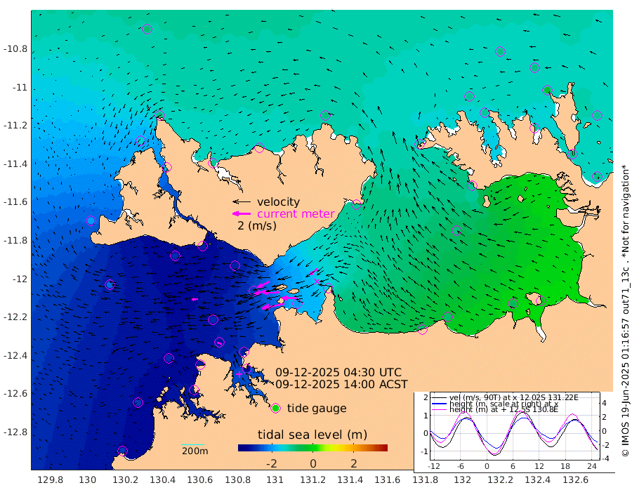 258cm/s -102T +4cm/s rms + 6cm/s 51T. Darwin_C1 52m 186cm/s -89T +4cm/s rms + 7cm/s -161T. Darwin_CW1 22m 135cm/s -107T +4cm/s rms + 8cm/s 61T. Darwin_CW2 34m 108cm/s -129T +3cm/s rms + 9cm/s 98T. Darwin_CW3 22m 185cm/s -91T +5cm/s rms + 7cm/s 88T. Darwin_C3 56m 146cm/s -115T +2cm/s rms + 9cm/s -126T. Darwin_CTbW 22m 71cm/s -94T +1cm/s rms + 1cm/s -47T. DARBGF 30m 55cm/s -67T +4cm/s rms + 3cm/s 80T. NRSDAR 19m -89cm Goodrich Bank -260cm Point Jenny -262cm Native Point -274cm Fish Reef -283cm Tapa Bay -198cm Point Fawcett (Offshore) -292cm Burge Point -277cm Munkunuwa -236cm Beagle A -284cm Parsons Bank -273cm Fenton Patches -265cm Hancox Shoal Area -283cm Nightcliff -307cm Darwin -300cm Charles Point Patches -193cm Glyde Point -92cm Chambers Bay -81cm Point Stuart -148cm Cape Hotham -91cm Christine Reef -75cm West Alligator Head -33cm East Field Island -109cm Two Hills Bay -108cm Camp Point -288cm Medina Inlet South -180cm South Barlow Point -146cm St. Asaph Bay -97cm Cape Van Dieman -109cm Snake Bay -97cm Cache Point -100cm Point Jahleel (Off) -127cm Cape Don -108cm Port Essington -106cm Smith Point - West -98cm NW Peacock Island -93cm North Of Jones Shoal -33cm Peacock Island -99cm Point David -105cm D'urville Point -94cm Copeland Island -104cm One Tree Point