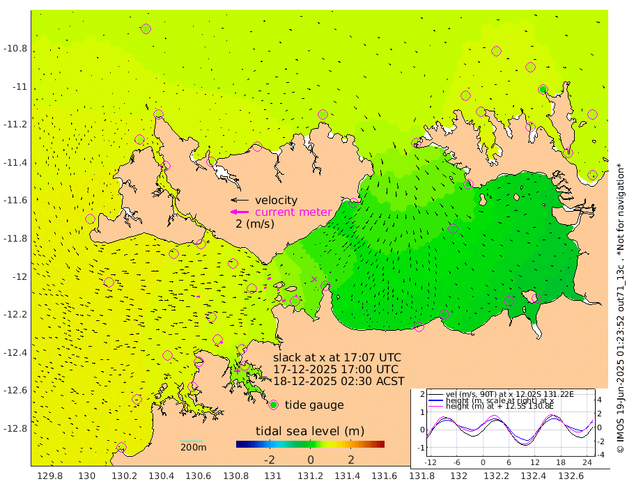 36cm/s 78T +4cm/s rms + 6cm/s 51T. Darwin_C1 52m 13cm/s 64T +4cm/s rms + 7cm/s -161T. Darwin_CW1 22m 25cm/s 76T +4cm/s rms + 8cm/s 61T. Darwin_CW2 34m 6cm/s -178T +3cm/s rms + 9cm/s 98T. Darwin_CW3 22m 23cm/s 86T +5cm/s rms + 7cm/s 88T. Darwin_C3 56m 40cm/s 62T +2cm/s rms + 9cm/s -126T. Darwin_CTbW 22m 32cm/s 92T +1cm/s rms + 1cm/s -47T. DARBGF 30m 30cm/s 123T +4cm/s rms + 3cm/s 80T. NRSDAR 19m 54cm Goodrich Bank 79cm Point Jenny 80cm Native Point 78cm Fish Reef 79cm Tapa Bay 75cm Point Fawcett (Offshore) 79cm Burge Point 72cm Munkunuwa 81cm Beagle A 76cm Parsons Bank 79cm Fenton Patches 68cm Hancox Shoal Area 82cm Nightcliff 78cm Darwin 82cm Charles Point Patches 41cm Glyde Point 0cm Chambers Bay -12cm Point Stuart 26cm Cape Hotham 3cm Christine Reef -22cm West Alligator Head -39cm East Field Island 14cm Two Hills Bay 18cm Camp Point 81cm Medina Inlet South 79cm South Barlow Point 67cm St. Asaph Bay 58cm Cape Van Dieman 67cm Snake Bay 56cm Cache Point 53cm Point Jahleel (Off) 52cm Cape Don 58cm Port Essington 59cm Smith Point - West 59cm NW Peacock Island 59cm North Of Jones Shoal 22cm Peacock Island 61cm Point David 63cm D'urville Point 58cm Copeland Island 62cm One Tree Point