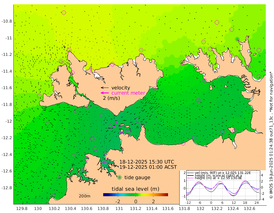 75cm/s -100T +4cm/s rms + 6cm/s 51T. Darwin_C1 52m 87cm/s -91T +4cm/s rms + 7cm/s -161T. Darwin_CW1 22m 27cm/s -106T +4cm/s rms + 8cm/s 61T. Darwin_CW2 34m 47cm/s -135T +3cm/s rms + 9cm/s 98T. Darwin_CW3 22m 57cm/s -91T +5cm/s rms + 7cm/s 88T. Darwin_C3 56m 29cm/s -115T +2cm/s rms + 9cm/s -126T. Darwin_CTbW 22m 10cm/s 108T +1cm/s rms + 1cm/s -47T. DARBGF 30m 12cm/s 146T +4cm/s rms + 3cm/s 80T. NRSDAR 19m 73cm Goodrich Bank -9cm Point Jenny -5cm Native Point -22cm Fish Reef -22cm Tapa Bay 36cm Point Fawcett (Offshore) -26cm Burge Point -26cm Munkunuwa 9cm Beagle A -34cm Parsons Bank -24cm Fenton Patches -38cm Hancox Shoal Area -35cm Nightcliff -43cm Darwin -26cm Charles Point Patches -38cm Glyde Point -50cm Chambers Bay -57cm Point Stuart -37cm Cape Hotham -38cm Christine Reef -68cm West Alligator Head -71cm East Field Island -32cm Two Hills Bay -25cm Camp Point -22cm Medina Inlet South 47cm South Barlow Point 56cm St. Asaph Bay 73cm Cape Van Dieman 75cm Snake Bay 69cm Cache Point 54cm Point Jahleel (Off) 23cm Cape Don 48cm Port Essington 48cm Smith Point - West 52cm NW Peacock Island 59cm North Of Jones Shoal 20cm Peacock Island 39cm Point David 49cm D'urville Point 33cm Copeland Island 39cm One Tree Point