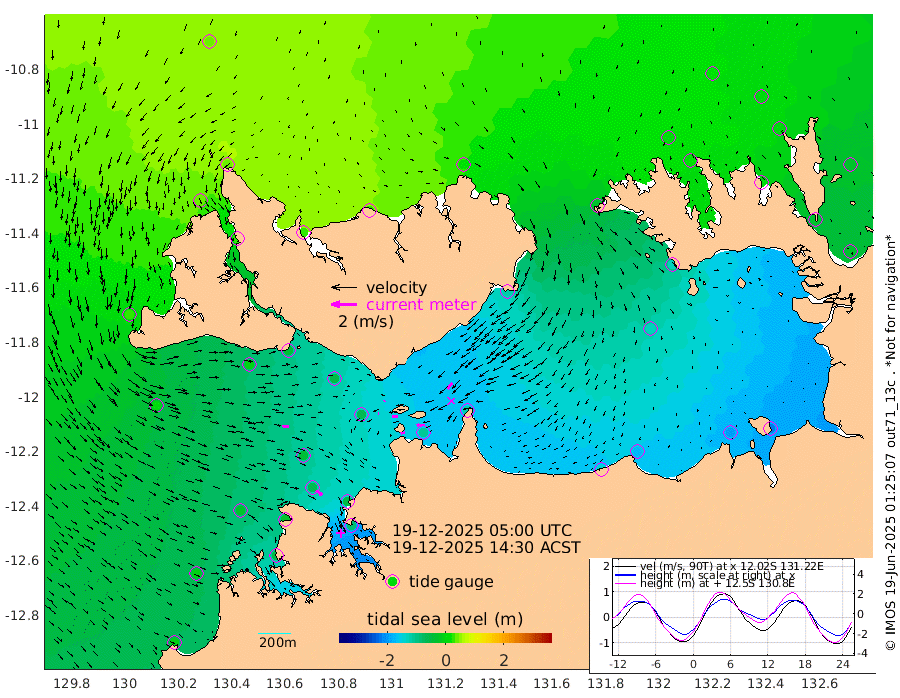 34cm/s -100T +4cm/s rms + 6cm/s 51T. Darwin_C1 52m 61cm/s -92T +4cm/s rms + 7cm/s -161T. Darwin_CW1 22m 3cm/s -87T +4cm/s rms + 8cm/s 61T. Darwin_CW2 34m 61cm/s -143T +3cm/s rms + 9cm/s 98T. Darwin_CW3 22m 46cm/s -88T +5cm/s rms + 7cm/s 88T. Darwin_C3 56m 5cm/s 52T +2cm/s rms + 9cm/s -126T. Darwin_CTbW 22m 52cm/s 97T +1cm/s rms + 1cm/s -47T. DARBGF 30m 59cm/s 127T +4cm/s rms + 3cm/s 80T. NRSDAR 19m 40cm Goodrich Bank -9cm Point Jenny -8cm Native Point -31cm Fish Reef -28cm Tapa Bay 25cm Point Fawcett (Offshore) -51cm Burge Point -11cm Munkunuwa 1cm Beagle A -51cm Parsons Bank -40cm Fenton Patches -59cm Hancox Shoal Area -50cm Nightcliff -81cm Darwin -57cm Charles Point Patches -105cm Glyde Point -146cm Chambers Bay -174cm Point Stuart -118cm Cape Hotham -126cm Christine Reef -193cm West Alligator Head -221cm East Field Island -126cm Two Hills Bay -121cm Camp Point -36cm Medina Inlet South 34cm South Barlow Point 44cm St. Asaph Bay 43cm Cape Van Dieman 34cm Snake Bay 32cm Cache Point 14cm Point Jahleel (Off) -33cm Cape Don 3cm Port Essington 14cm Smith Point - West 6cm NW Peacock Island 14cm North Of Jones Shoal 3cm Peacock Island -28cm Point David 7cm D'urville Point -30cm Copeland Island -28cm One Tree Point
