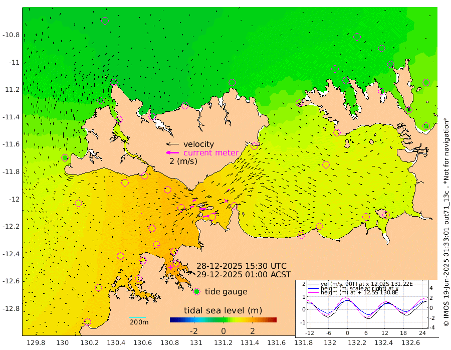 93cm/s 78T +4cm/s rms + 6cm/s 51T. Darwin_C1 52m 55cm/s 90T +4cm/s rms + 7cm/s -161T. Darwin_CW1 22m 61cm/s 72T +4cm/s rms + 8cm/s 61T. Darwin_CW2 34m 54cm/s 47T +3cm/s rms + 9cm/s 98T. Darwin_CW3 22m 97cm/s 89T +5cm/s rms + 7cm/s 88T. Darwin_C3 56m 53cm/s 65T +2cm/s rms + 9cm/s -126T. Darwin_CTbW 22m 6cm/s -11T +1cm/s rms + 1cm/s -47T. DARBGF 30m 12cm/s -25T +4cm/s rms + 3cm/s 80T. NRSDAR 19m -20cm Goodrich Bank 106cm Point Jenny 106cm Native Point 112cm Fish Reef 122cm Tapa Bay 32cm Point Fawcett (Offshore) 142cm Burge Point 111cm Munkunuwa 89cm Beagle A 139cm Parsons Bank 135cm Fenton Patches 137cm Hancox Shoal Area 148cm Nightcliff 153cm Darwin 124cm Charles Point Patches 129cm Glyde Point 126cm Chambers Bay 128cm Point Stuart 118cm Cape Hotham 118cm Christine Reef 140cm West Alligator Head 139cm East Field Island 107cm Two Hills Bay 103cm Camp Point 119cm Medina Inlet South 26cm South Barlow Point 2cm St. Asaph Bay -18cm Cape Van Dieman -9cm Snake Bay -14cm Cache Point 5cm Point Jahleel (Off) 48cm Cape Don 9cm Port Essington 9cm Smith Point - West 9cm NW Peacock Island -8cm North Of Jones Shoal -1cm Peacock Island 32cm Point David 14cm D'urville Point 33cm Copeland Island 28cm One Tree Point
