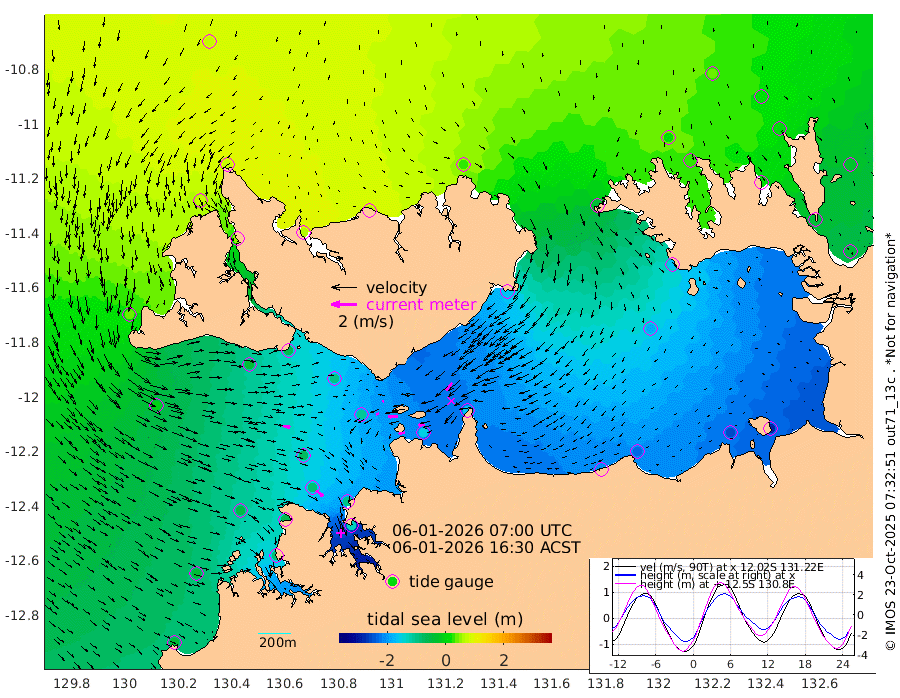 51cm/s -102T +4cm/s rms + 6cm/s 51T. Darwin_C1 52m 49cm/s -92T +4cm/s rms + 7cm/s -161T. Darwin_CW1 22m 23cm/s -106T +4cm/s rms + 8cm/s 61T. Darwin_CW2 34m 78cm/s -141T +3cm/s rms + 9cm/s 98T. Darwin_CW3 22m 72cm/s -89T +5cm/s rms + 7cm/s 88T. Darwin_C3 56m 10cm/s -110T +2cm/s rms + 9cm/s -126T. Darwin_CTbW 22m 62cm/s 98T +1cm/s rms + 1cm/s -47T. DARBGF 30m 72cm/s 128T +4cm/s rms + 3cm/s 80T. NRSDAR 19m 70cm Goodrich Bank -39cm Point Jenny -36cm Native Point -50cm Fish Reef -64cm Tapa Bay 39cm Point Fawcett (Offshore) -89cm Burge Point -36cm Munkunuwa -6cm Beagle A -94cm Parsons Bank -71cm Fenton Patches -110cm Hancox Shoal Area -94cm Nightcliff -124cm Darwin -90cm Charles Point Patches -148cm Glyde Point -212cm Chambers Bay -232cm Point Stuart -160cm Cape Hotham -188cm Christine Reef -257cm West Alligator Head -288cm East Field Island -166cm Two Hills Bay -164cm Camp Point -60cm Medina Inlet South 52cm South Barlow Point 69cm St. Asaph Bay 73cm Cape Van Dieman 67cm Snake Bay 59cm Cache Point 31cm Point Jahleel (Off) -42cm Cape Don 13cm Port Essington 23cm Smith Point - West 14cm NW Peacock Island 35cm North Of Jones Shoal 9cm Peacock Island -36cm Point David 13cm D'urville Point -42cm Copeland Island -31cm One Tree Point