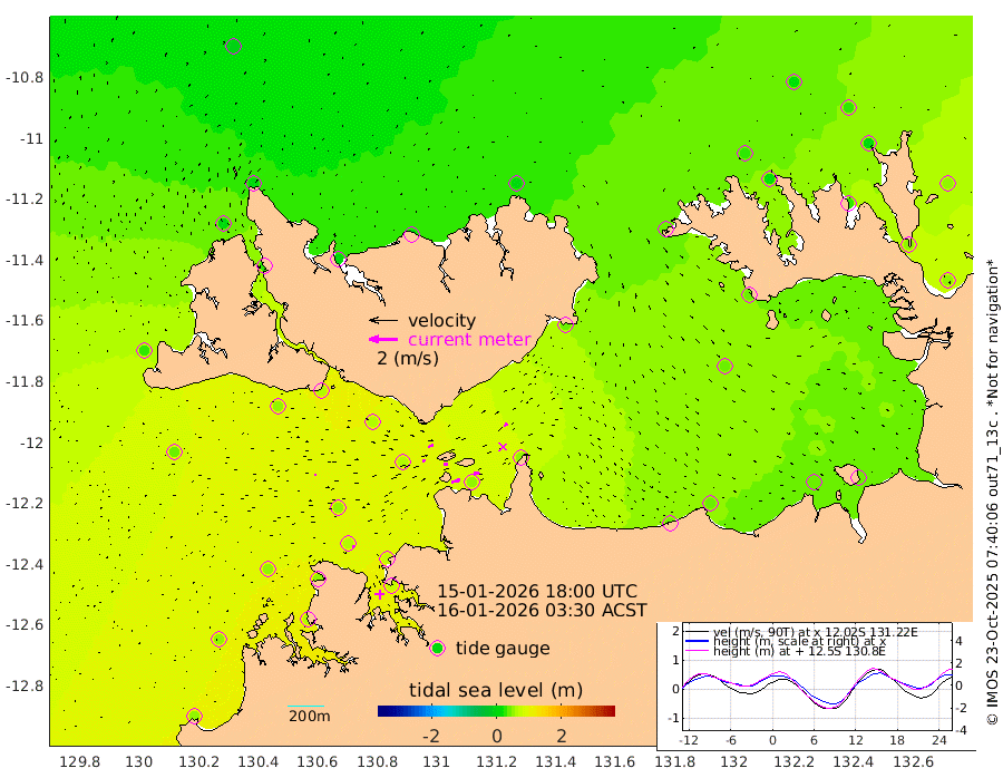 60cm/s 77T +4cm/s rms + 6cm/s 51T. Darwin_C1 52m 42cm/s 83T +4cm/s rms + 7cm/s -161T. Darwin_CW1 22m 21cm/s 77T +4cm/s rms + 8cm/s 61T. Darwin_CW2 34m 27cm/s 46T +3cm/s rms + 9cm/s 98T. Darwin_CW3 22m 30cm/s 89T +5cm/s rms + 7cm/s 88T. Darwin_C3 56m 40cm/s 64T +2cm/s rms + 9cm/s -126T. Darwin_CTbW 22m 11cm/s 87T +1cm/s rms + 1cm/s -47T. DARBGF 30m 10cm/s 106T +4cm/s rms + 3cm/s 80T. NRSDAR 19m -2cm Goodrich Bank 48cm Point Jenny 48cm Native Point 54cm Fish Reef 55cm Tapa Bay 26cm Point Fawcett (Offshore) 58cm Burge Point 45cm Munkunuwa 40cm Beagle A 63cm Parsons Bank 56cm Fenton Patches 61cm Hancox Shoal Area 69cm Nightcliff 70cm Darwin 61cm Charles Point Patches 54cm Glyde Point 40cm Chambers Bay 43cm Point Stuart 50cm Cape Hotham 35cm Christine Reef 43cm West Alligator Head 37cm East Field Island 43cm Two Hills Bay 42cm Camp Point 56cm Medina Inlet South 23cm South Barlow Point 9cm St. Asaph Bay 2cm Cape Van Dieman 11cm Snake Bay 4cm Cache Point 11cm Point Jahleel (Off) 34cm Cape Don 23cm Port Essington 22cm Smith Point - West 24cm NW Peacock Island 19cm North Of Jones Shoal 9cm Peacock Island 47cm Point David 29cm D'urville Point 48cm Copeland Island 45cm One Tree Point