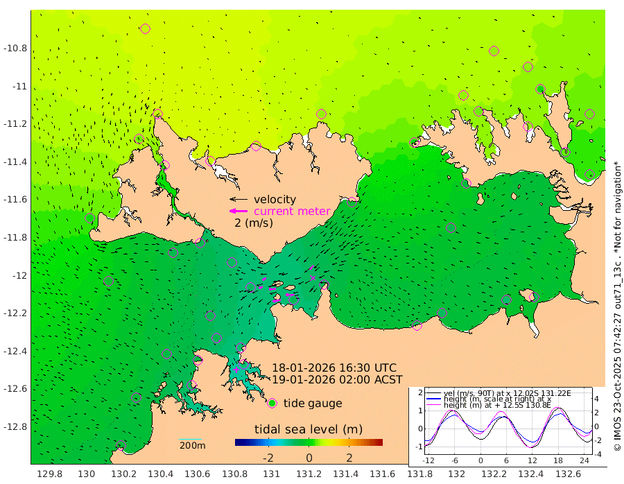 97cm/s -100T +4cm/s rms + 6cm/s 51T. Darwin_C1 52m 97cm/s -92T +4cm/s rms + 7cm/s -161T. Darwin_CW1 22m 45cm/s -107T +4cm/s rms + 8cm/s 61T. Darwin_CW2 34m 63cm/s -136T +3cm/s rms + 9cm/s 98T. Darwin_CW3 22m 77cm/s -92T +5cm/s rms + 7cm/s 88T. Darwin_C3 56m 46cm/s -115T +2cm/s rms + 9cm/s -126T. Darwin_CTbW 22m 6cm/s 136T +1cm/s rms + 1cm/s -47T. DARBGF 30m 10cm/s 167T +4cm/s rms + 3cm/s 80T. NRSDAR 19m 70cm Goodrich Bank -39cm Point Jenny -35cm Native Point -55cm Fish Reef -55cm Tapa Bay 19cm Point Fawcett (Offshore) -69cm Burge Point -59cm Munkunuwa -23cm Beagle A -71cm Parsons Bank -66cm Fenton Patches -75cm Hancox Shoal Area -85cm Nightcliff -86cm Darwin -62cm Charles Point Patches -66cm Glyde Point -76cm Chambers Bay -74cm Point Stuart -61cm Cape Hotham -62cm Christine Reef -87cm West Alligator Head -89cm East Field Island -50cm Two Hills Bay -45cm Camp Point -59cm Medina Inlet South 28cm South Barlow Point 43cm St. Asaph Bay 70cm Cape Van Dieman 68cm Snake Bay 66cm Cache Point 48cm Point Jahleel (Off) 11cm Cape Don 45cm Port Essington 44cm Smith Point - West 49cm NW Peacock Island 52cm North Of Jones Shoal 17cm Peacock Island 39cm Point David 46cm D'urville Point 33cm Copeland Island 36cm One Tree Point