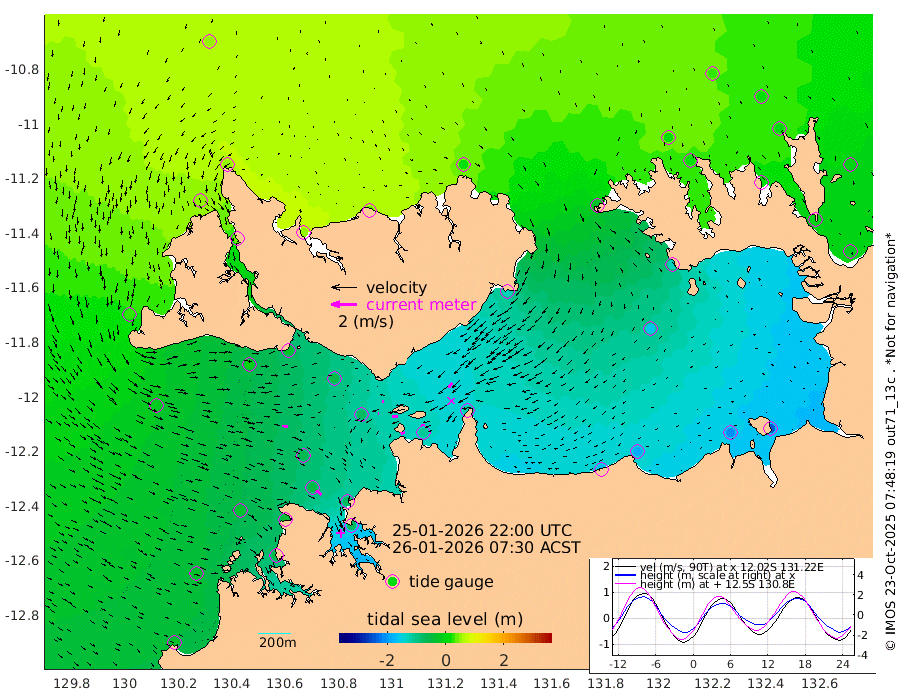 33cm/s -102T +4cm/s rms + 6cm/s 51T. Darwin_C1 52m 24cm/s -92T +4cm/s rms + 7cm/s -161T. Darwin_CW1 22m 8cm/s -101T +4cm/s rms + 8cm/s 61T. Darwin_CW2 34m 47cm/s -143T +3cm/s rms + 9cm/s 98T. Darwin_CW3 22m 40cm/s -87T +5cm/s rms + 7cm/s 88T. Darwin_C3 56m 15cm/s -115T +2cm/s rms + 9cm/s -126T. Darwin_CTbW 22m 44cm/s 98T +1cm/s rms + 1cm/s -47T. DARBGF 30m 52cm/s 128T +4cm/s rms + 3cm/s 80T. NRSDAR 19m 48cm Goodrich Bank -28cm Point Jenny -25cm Native Point -31cm Fish Reef -40cm Tapa Bay 30cm Point Fawcett (Offshore) -54cm Burge Point -9cm Munkunuwa -19cm Beagle A -51cm Parsons Bank -61cm Fenton Patches -73cm Hancox Shoal Area -74cm Nightcliff -72cm Darwin -46cm Charles Point Patches -110cm Glyde Point -171cm Chambers Bay -184cm Point Stuart -122cm Cape Hotham -158cm Christine Reef -207cm West Alligator Head -238cm East Field Island -132cm Two Hills Bay -126cm Camp Point -29cm Medina Inlet South 42cm South Barlow Point 48cm St. Asaph Bay 53cm Cape Van Dieman 49cm Snake Bay 39cm Cache Point 18cm Point Jahleel (Off) -26cm Cape Don 20cm Port Essington 17cm Smith Point - West 13cm NW Peacock Island 28cm North Of Jones Shoal 9cm Peacock Island -11cm Point David 13cm D'urville Point -16cm Copeland Island -7cm One Tree Point