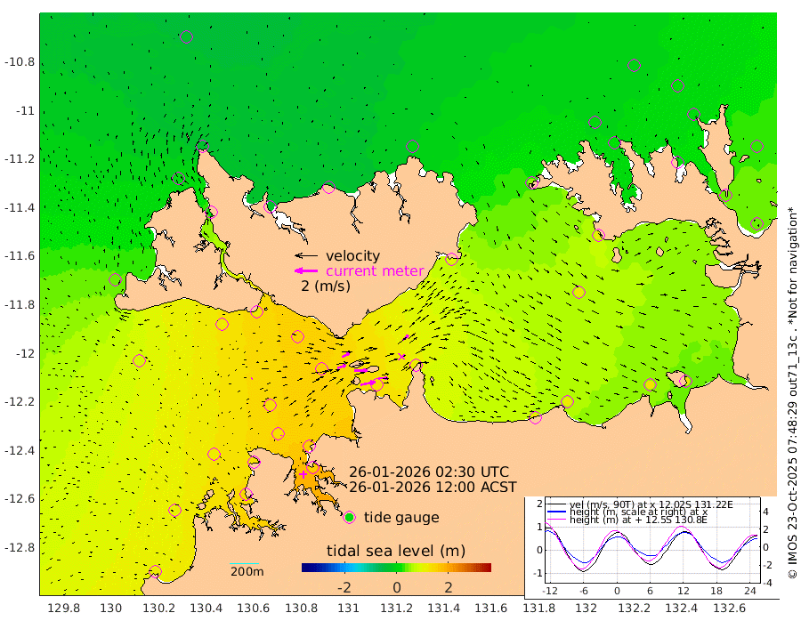 131cm/s 78T +4cm/s rms + 6cm/s 51T. Darwin_C1 52m 84cm/s 92T +4cm/s rms + 7cm/s -161T. Darwin_CW1 22m 75cm/s 72T +4cm/s rms + 8cm/s 61T. Darwin_CW2 34m 68cm/s 47T +3cm/s rms + 9cm/s 98T. Darwin_CW3 22m 118cm/s 89T +5cm/s rms + 7cm/s 88T. Darwin_C3 56m 70cm/s 65T +2cm/s rms + 9cm/s -126T. Darwin_CTbW 22m 9cm/s 52T +1cm/s rms + 1cm/s -47T. DARBGF 30m 8cm/s 1T +4cm/s rms + 3cm/s 80T. NRSDAR 19m -28cm Goodrich Bank 116cm Point Jenny 111cm Native Point 115cm Fish Reef 133cm Tapa Bay 38cm Point Fawcett (Offshore) 137cm Burge Point 118cm Munkunuwa 82cm Beagle A 147cm Parsons Bank 129cm Fenton Patches 153cm Hancox Shoal Area 152cm Nightcliff 155cm Darwin 134cm Charles Point Patches 124cm Glyde Point 127cm Chambers Bay 120cm Point Stuart 114cm Cape Hotham 119cm Christine Reef 131cm West Alligator Head 123cm East Field Island 102cm Two Hills Bay 92cm Camp Point 121cm Medina Inlet South 21cm South Barlow Point 2cm St. Asaph Bay -26cm Cape Van Dieman -25cm Snake Bay -17cm Cache Point 1cm Point Jahleel (Off) 48cm Cape Don 11cm Port Essington 16cm Smith Point - West 13cm NW Peacock Island -5cm North Of Jones Shoal 0cm Peacock Island 36cm Point David 20cm D'urville Point 41cm Copeland Island 31cm One Tree Point