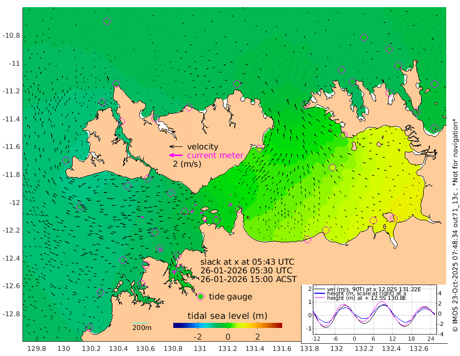 47cm/s -103T +4cm/s rms + 6cm/s 51T. Darwin_C1 52m 23cm/s -90T +4cm/s rms + 7cm/s -161T. Darwin_CW1 22m 46cm/s -110T +4cm/s rms + 8cm/s 61T. Darwin_CW2 34m 10cm/s -72T +3cm/s rms + 9cm/s 98T. Darwin_CW3 22m 46cm/s -94T +5cm/s rms + 7cm/s 88T. Darwin_C3 56m 26cm/s -118T +2cm/s rms + 9cm/s -126T. Darwin_CTbW 22m 44cm/s -89T +1cm/s rms + 1cm/s -47T. DARBGF 30m 43cm/s -60T +4cm/s rms + 3cm/s 80T. NRSDAR 19m -42cm Goodrich Bank -57cm Point Jenny -61cm Native Point -65cm Fish Reef -61cm Tapa Bay -62cm Point Fawcett (Offshore) -64cm Burge Point -89cm Munkunuwa -56cm Beagle A -71cm Parsons Bank -52cm Fenton Patches -42cm Hancox Shoal Area -45cm Nightcliff -61cm Darwin -63cm Charles Point Patches 5cm Glyde Point 82cm Chambers Bay 90cm Point Stuart 28cm Cape Hotham 78cm Christine Reef 107cm West Alligator Head 142cm East Field Island 49cm Two Hills Bay 49cm Camp Point -74cm Medina Inlet South -75cm South Barlow Point -58cm St. Asaph Bay -49cm Cape Van Dieman -56cm Snake Bay -37cm Cache Point -31cm Point Jahleel (Off) -17cm Cape Don -37cm Port Essington -35cm Smith Point - West -32cm NW Peacock Island -31cm North Of Jones Shoal -11cm Peacock Island -28cm Point David -36cm D'urville Point -23cm Copeland Island -28cm One Tree Point