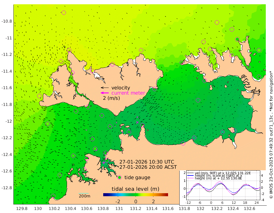 34cm/s -102T +4cm/s rms + 6cm/s 51T. Darwin_C1 52m 20cm/s -86T +4cm/s rms + 7cm/s -161T. Darwin_CW1 22m 13cm/s -113T +4cm/s rms + 8cm/s 61T. Darwin_CW2 34m 25cm/s -131T +3cm/s rms + 9cm/s 98T. Darwin_CW3 22m 26cm/s -90T +5cm/s rms + 7cm/s 88T. Darwin_C3 56m 19cm/s -115T +2cm/s rms + 9cm/s -126T. Darwin_CTbW 22m 23cm/s 96T +1cm/s rms + 1cm/s -47T. DARBGF 30m 26cm/s 131T +4cm/s rms + 3cm/s 80T. NRSDAR 19m 86cm Goodrich Bank 20cm Point Jenny 23cm Native Point 23cm Fish Reef 14cm Tapa Bay 68cm Point Fawcett (Offshore) 8cm Burge Point 14cm Munkunuwa 44cm Beagle A -3cm Parsons Bank 13cm Fenton Patches -9cm Hancox Shoal Area -6cm Nightcliff 1cm Darwin 24cm Charles Point Patches -21cm Glyde Point -58cm Chambers Bay -69cm Point Stuart -30cm Cape Hotham -53cm Christine Reef -82cm West Alligator Head -90cm East Field Island -37cm Two Hills Bay -27cm Camp Point 21cm Medina Inlet South 74cm South Barlow Point 82cm St. Asaph Bay 86cm Cape Van Dieman 87cm Snake Bay 82cm Cache Point 64cm Point Jahleel (Off) 26cm Cape Don 58cm Port Essington 56cm Smith Point - West 55cm NW Peacock Island 68cm North Of Jones Shoal 22cm Peacock Island 28cm Point David 52cm D'urville Point 22cm Copeland Island 34cm One Tree Point