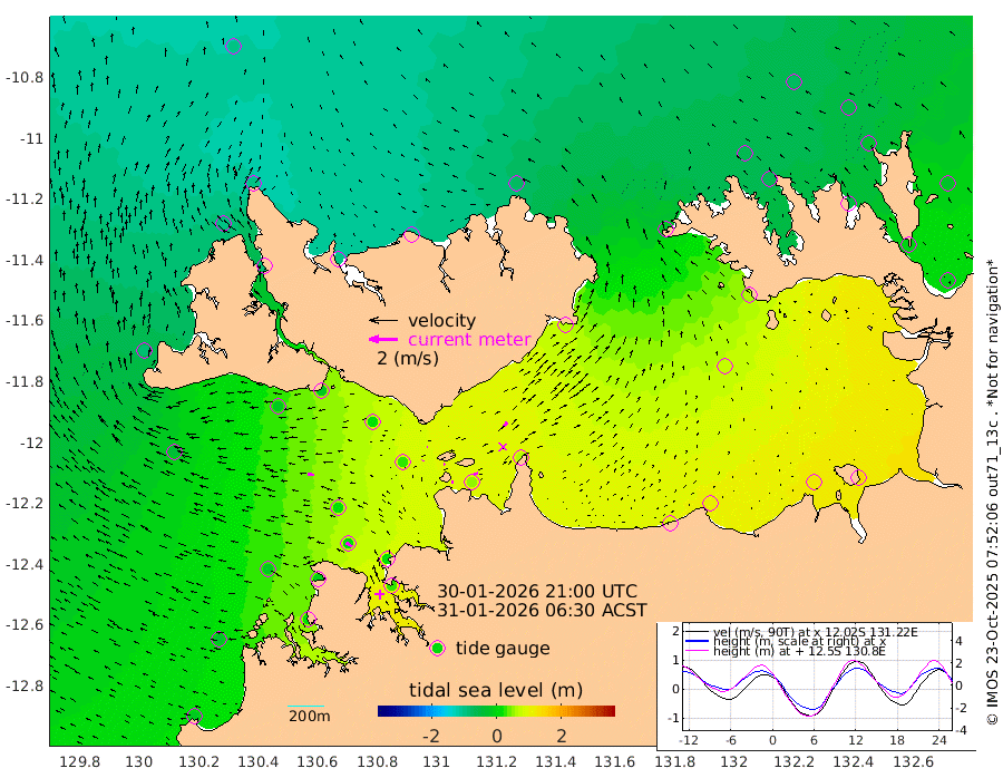 14cm/s 86T +4cm/s rms + 6cm/s 51T. Darwin_C1 52m 32cm/s 91T +4cm/s rms + 7cm/s -161T. Darwin_CW1 22m 5cm/s 21T +4cm/s rms + 8cm/s 61T. Darwin_CW2 34m 34cm/s 35T +3cm/s rms + 9cm/s 98T. Darwin_CW3 22m 10cm/s 93T +5cm/s rms + 7cm/s 88T. Darwin_C3 56m 3cm/s -108T +2cm/s rms + 9cm/s -126T. Darwin_CTbW 22m 42cm/s -86T +1cm/s rms + 1cm/s -47T. DARBGF 30m 47cm/s -56T +4cm/s rms + 3cm/s 80T. NRSDAR 19m -98cm Goodrich Bank -22cm Point Jenny -23cm Native Point -14cm Fish Reef -4cm Tapa Bay -87cm Point Fawcett (Offshore) 14cm Burge Point -15cm Munkunuwa -36cm Beagle A 20cm Parsons Bank 13cm Fenton Patches 30cm Hancox Shoal Area 20cm Nightcliff 32cm Darwin 3cm Charles Point Patches 52cm Glyde Point 85cm Chambers Bay 102cm Point Stuart 60cm Cape Hotham 73cm Christine Reef 116cm West Alligator Head 137cm East Field Island 57cm Two Hills Bay 63cm Camp Point -12cm Medina Inlet South -85cm South Barlow Point -99cm St. Asaph Bay -99cm Cape Van Dieman -96cm Snake Bay -95cm Cache Point -72cm Point Jahleel (Off) -26cm Cape Don -58cm Port Essington -62cm Smith Point - West -55cm NW Peacock Island -79cm North Of Jones Shoal -24cm Peacock Island -11cm Point David -51cm D'urville Point -3cm Copeland Island -24cm One Tree Point