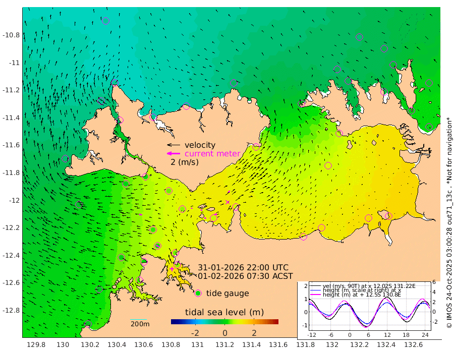 22cm/s 84T +4cm/s rms + 6cm/s 51T. Darwin_C1 52m 39cm/s 89T +4cm/s rms + 7cm/s -161T. Darwin_CW1 22m 14cm/s 55T +4cm/s rms + 8cm/s 61T. Darwin_CW2 34m 40cm/s 37T +3cm/s rms + 9cm/s 98T. Darwin_CW3 22m 25cm/s 90T +5cm/s rms + 7cm/s 88T. Darwin_C3 56m 1cm/s 45T +2cm/s rms + 9cm/s -126T. Darwin_CTbW 22m 47cm/s -84T +1cm/s rms + 1cm/s -47T. DARBGF 30m 56cm/s -55T +4cm/s rms + 3cm/s 80T. NRSDAR 19m -106cm Goodrich Bank -14cm Point Jenny -16cm Native Point -2cm Fish Reef 8cm Tapa Bay -89cm Point Fawcett (Offshore) 29cm Burge Point -3cm Munkunuwa -32cm Beagle A 39cm Parsons Bank 26cm Fenton Patches 50cm Hancox Shoal Area 37cm Nightcliff 54cm Darwin 21cm Charles Point Patches 71cm Glyde Point 109cm Chambers Bay 126cm Point Stuart 80cm Cape Hotham 94cm Christine Reef 142cm West Alligator Head 165cm East Field Island 75cm Two Hills Bay 80cm Camp Point 2cm Medina Inlet South -87cm South Barlow Point -105cm St. Asaph Bay -107cm Cape Van Dieman -104cm Snake Bay -101cm Cache Point -74cm Point Jahleel (Off) -20cm Cape Don -58cm Port Essington -62cm Smith Point - West -55cm NW Peacock Island -81cm North Of Jones Shoal -25cm Peacock Island -7cm Point David -50cm D'urville Point 2cm Copeland Island -20cm One Tree Point