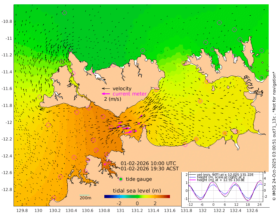 174cm/s 79T +4cm/s rms + 6cm/s 51T. Darwin_C1 52m 158cm/s 92T +4cm/s rms + 7cm/s -161T. Darwin_CW1 22m 108cm/s 71T +4cm/s rms + 8cm/s 61T. Darwin_CW2 34m 105cm/s 46T +3cm/s rms + 9cm/s 98T. Darwin_CW3 22m 170cm/s 90T +5cm/s rms + 7cm/s 88T. Darwin_C3 56m 89cm/s 66T +2cm/s rms + 9cm/s -126T. Darwin_CTbW 22m 13cm/s 40T +1cm/s rms + 1cm/s -47T. DARBGF 30m 12cm/s -17T +4cm/s rms + 3cm/s 80T. NRSDAR 19m -8cm Goodrich Bank 195cm Point Jenny 193cm Native Point 205cm Fish Reef 221cm Tapa Bay 89cm Point Fawcett (Offshore) 248cm Burge Point 205cm Munkunuwa 168cm Beagle A 226cm Parsons Bank 234cm Fenton Patches 229cm Hancox Shoal Area 246cm Nightcliff 259cm Darwin 230cm Charles Point Patches 203cm Glyde Point 187cm Chambers Bay 181cm Point Stuart 178cm Cape Hotham 174cm Christine Reef 198cm West Alligator Head 196cm East Field Island 150cm Two Hills Bay 157cm Camp Point 214cm Medina Inlet South 64cm South Barlow Point 39cm St. Asaph Bay -7cm Cape Van Dieman -4cm Snake Bay -1cm Cache Point 19cm Point Jahleel (Off) 70cm Cape Don 14cm Port Essington 12cm Smith Point - West 5cm NW Peacock Island -5cm North Of Jones Shoal -2cm Peacock Island 15cm Point David 7cm D'urville Point 16cm Copeland Island 16cm One Tree Point