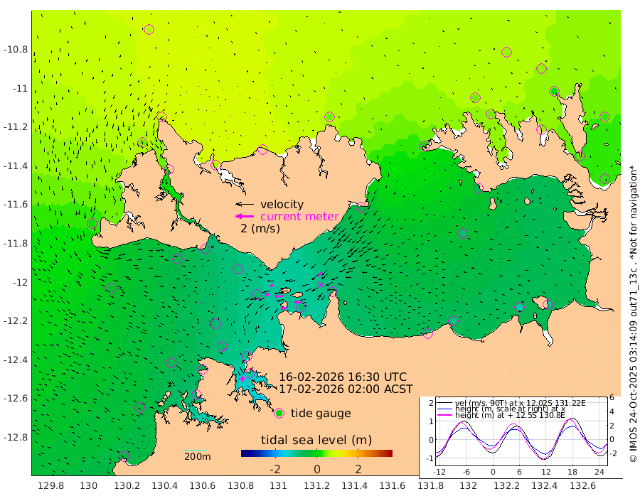 78cm/s -101T +4cm/s rms + 6cm/s 51T. Darwin_C1 52m 84cm/s -92T +4cm/s rms + 7cm/s -161T. Darwin_CW1 22m 47cm/s -107T +4cm/s rms + 8cm/s 61T. Darwin_CW2 34m 61cm/s -137T +3cm/s rms + 9cm/s 98T. Darwin_CW3 22m 86cm/s -92T +5cm/s rms + 7cm/s 88T. Darwin_C3 56m 33cm/s -114T +2cm/s rms + 9cm/s -126T. Darwin_CTbW 22m 14cm/s 115T +1cm/s rms + 1cm/s -47T. DARBGF 30m 18cm/s 146T +4cm/s rms + 3cm/s 80T. NRSDAR 19m 67cm Goodrich Bank -45cm Point Jenny -43cm Native Point -64cm Fish Reef -65cm Tapa Bay 16cm Point Fawcett (Offshore) -84cm Burge Point -67cm Munkunuwa -31cm Beagle A -83cm Parsons Bank -79cm Fenton Patches -87cm Hancox Shoal Area -99cm Nightcliff -104cm Darwin -77cm Charles Point Patches -86cm Glyde Point -99cm Chambers Bay -99cm Point Stuart -81cm Cape Hotham -82cm Christine Reef -115cm West Alligator Head -122cm East Field Island -69cm Two Hills Bay -67cm Camp Point -71cm Medina Inlet South 25cm South Barlow Point 41cm St. Asaph Bay 68cm Cape Van Dieman 64cm Snake Bay 64cm Cache Point 43cm Point Jahleel (Off) 4cm Cape Don 43cm Port Essington 44cm Smith Point - West 47cm NW Peacock Island 50cm North Of Jones Shoal 17cm Peacock Island 36cm Point David 45cm D'urville Point 30cm Copeland Island 32cm One Tree Point