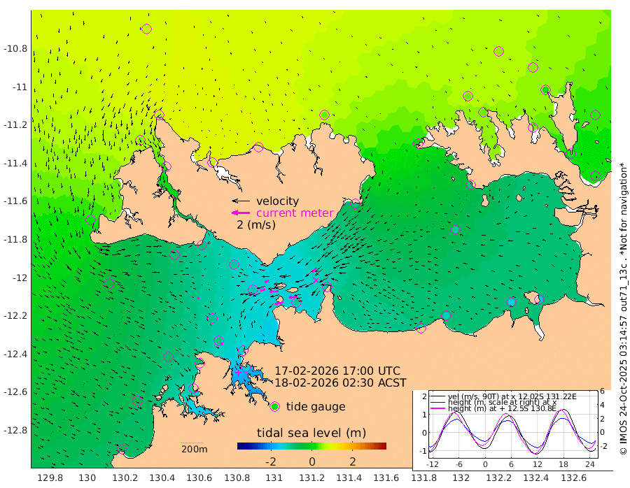 98cm/s -100T +4cm/s rms + 6cm/s 51T. Darwin_C1 52m 90cm/s -92T +4cm/s rms + 7cm/s -161T. Darwin_CW1 22m 54cm/s -107T +4cm/s rms + 8cm/s 61T. Darwin_CW2 34m 73cm/s -137T +3cm/s rms + 9cm/s 98T. Darwin_CW3 22m 98cm/s -91T +5cm/s rms + 7cm/s 88T. Darwin_C3 56m 45cm/s -115T +2cm/s rms + 9cm/s -126T. Darwin_CTbW 22m 20cm/s 111T +1cm/s rms + 1cm/s -47T. DARBGF 30m 26cm/s 142T +4cm/s rms + 3cm/s 80T. NRSDAR 19m 75cm Goodrich Bank -58cm Point Jenny -55cm Native Point -77cm Fish Reef -83cm Tapa Bay 19cm Point Fawcett (Offshore) -104cm Burge Point -81cm Munkunuwa -39cm Beagle A -106cm Parsons Bank -99cm Fenton Patches -114cm Hancox Shoal Area -125cm Nightcliff -132cm Darwin -96cm Charles Point Patches -112cm Glyde Point -131cm Chambers Bay -133cm Point Stuart -108cm Cape Hotham -112cm Christine Reef -152cm West Alligator Head -162cm East Field Island -95cm Two Hills Bay -92cm Camp Point -88cm Medina Inlet South 27cm South Barlow Point 47cm St. Asaph Bay 77cm Cape Van Dieman 69cm Snake Bay 71cm Cache Point 45cm Point Jahleel (Off) -4cm Cape Don 43cm Port Essington 44cm Smith Point - West 46cm NW Peacock Island 53cm North Of Jones Shoal 17cm Peacock Island 25cm Point David 43cm D'urville Point 19cm Copeland Island 24cm One Tree Point