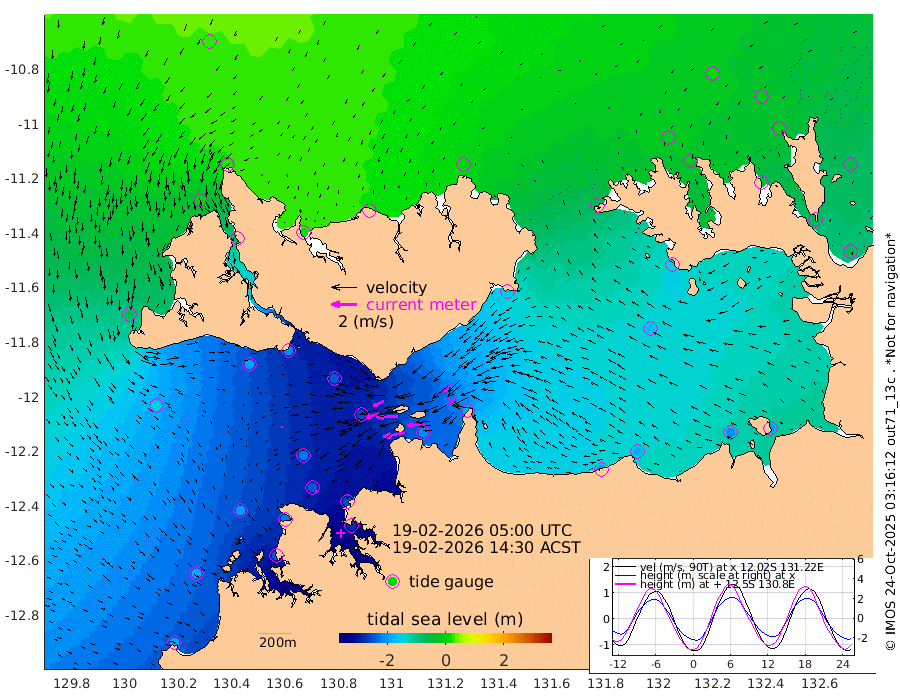 172cm/s -101T +4cm/s rms + 6cm/s 51T. Darwin_C1 52m 132cm/s -91T +4cm/s rms + 7cm/s -161T. Darwin_CW1 22m 99cm/s -106T +4cm/s rms + 8cm/s 61T. Darwin_CW2 34m 99cm/s -136T +3cm/s rms + 9cm/s 98T. Darwin_CW3 22m 165cm/s -90T +5cm/s rms + 7cm/s 88T. Darwin_C3 56m 92cm/s -116T +2cm/s rms + 9cm/s -126T. Darwin_CTbW 22m 10cm/s -160T +1cm/s rms + 1cm/s -47T. DARBGF 30m 14cm/s 179T +4cm/s rms + 3cm/s 80T. NRSDAR 19m 32cm Goodrich Bank -182cm Point Jenny -181cm Native Point -191cm Fish Reef -220cm Tapa Bay -61cm Point Fawcett (Offshore) -239cm Burge Point -196cm Munkunuwa -139cm Beagle A -241cm Parsons Bank -223cm Fenton Patches -248cm Hancox Shoal Area -252cm Nightcliff -277cm Darwin -243cm Charles Point Patches -213cm Glyde Point -199cm Chambers Bay -188cm Point Stuart -185cm Cape Hotham -180cm Christine Reef -203cm West Alligator Head -198cm East Field Island -157cm Two Hills Bay -167cm Camp Point -213cm Medina Inlet South -47cm South Barlow Point -10cm St. Asaph Bay 30cm Cape Van Dieman 21cm Snake Bay 25cm Cache Point -3cm Point Jahleel (Off) -76cm Cape Don -20cm Port Essington -16cm Smith Point - West -15cm NW Peacock Island 8cm North Of Jones Shoal 0cm Peacock Island -54cm Point David -23cm D'urville Point -58cm Copeland Island -49cm One Tree Point